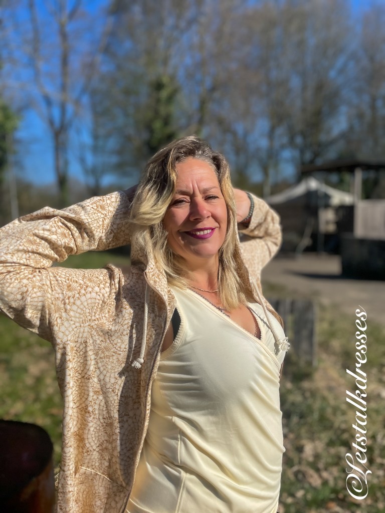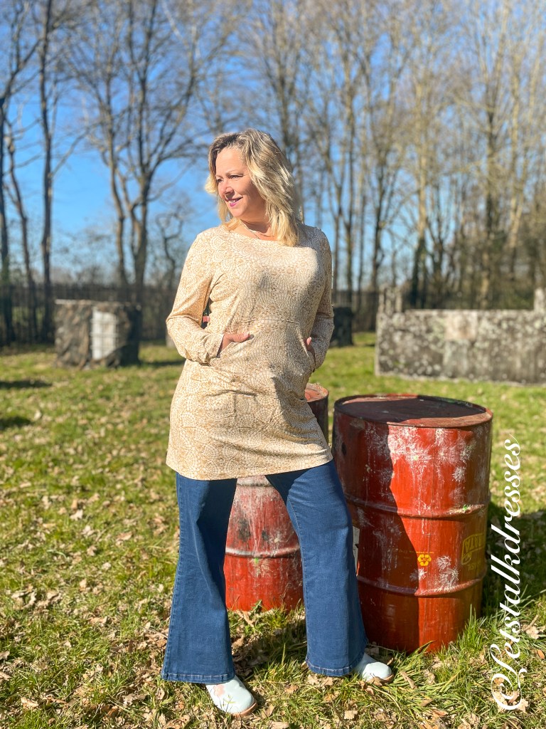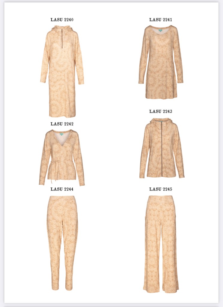 Voor deze blog koos ik de Hoodie, de Pants en de Sweater (die je ook als tuniek kunt dragen). Ik had ook graag de lange wijde ‘woonjurk’ willen laten zien die je wel ziet in het lookbook maar die is niet voorradig bij LaLamour.