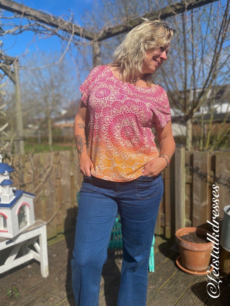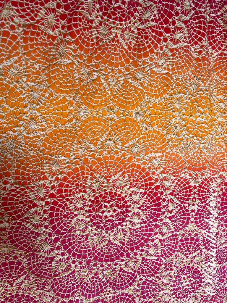 LaLamour heeft de gehele Mandala Serie uitgevoerd in het mooie Micromodal met Elastaan (5%). In deze blog zie je de print met het mooie Sunset Gradiënt kleurverloop onder het prachtige kantprintje.