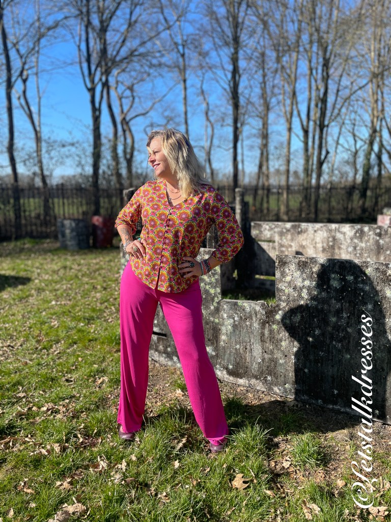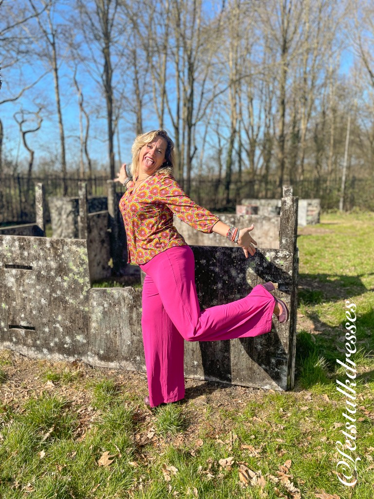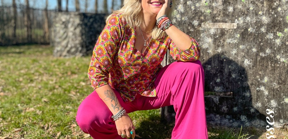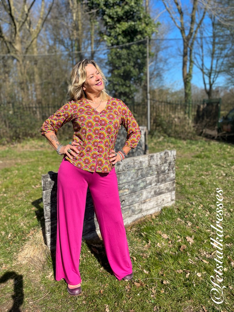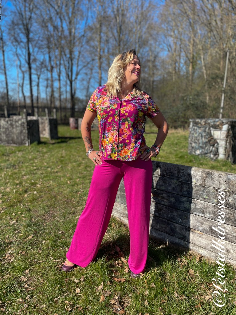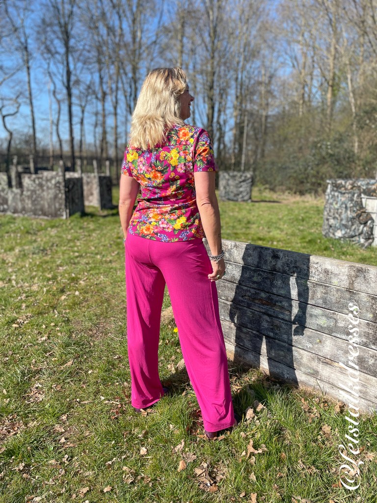 Omdat deze blouse ook zo prachtig combineert met de Palazzo Pants Fuchsia heb ik hem ook aan in deze fotoserie. Maar… hij komt in een latere blog over deze serie nog uitgebreid aan bod. Ik zal hem daar meer laten zien en beschrijven!