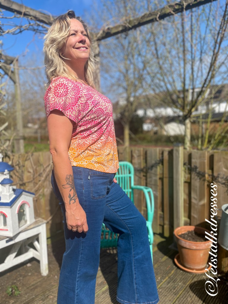 Maar… op al die broeken wil ik wel weer mooie tops dragen… een t-shirt is ook maar wat aan de ‘saaie’ kant, of niet dan? Gelukkig is LaLamour ook hierin heel actief aan het ontwerpen geslagen. We kennen natuurlijk de Lounge Pants al, zoals ook gezien in mijn vorige blog (klik hier). Maar dit jaar is er in de ‘Plain’ -en in de ‘Paisley’ serie weer een mooie variant bij gekomen: de Palazzo Pants!