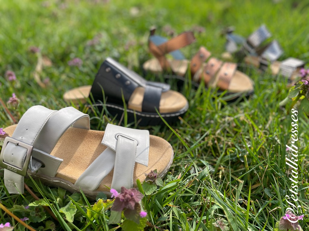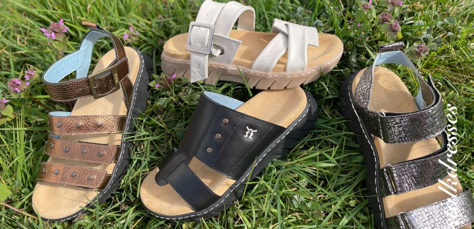 De sandalen hebben bijvoorbeeld een ander, meer gevormd voetbed en kurk in de binnenzolen. Ze zijn gemaakt om met blote voeten in te lopen dus je snapt dat de binnenkant extra zacht is. Er zijn 4 varianten gemaakt deze zomer: 1 instapmuiltje en 3 band-sandalen.
