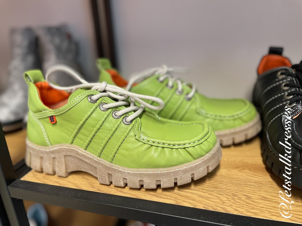En natuurlijk zijn er ook enkele spetterende kleuren hoor: zie maar de prachtige limegroene lage megamoks en de supergave Red Pearl sandalen… (die ik meteen heb gekocht hahaha). Daarnaast zijn er ook nog weer diverse modellen met gave prints.