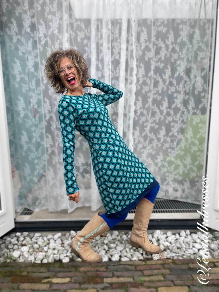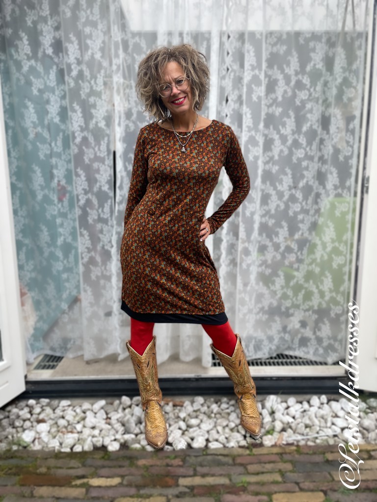 Ook al is de Amy Dress nooit helemaal weg geweest, is hij nu echt weer volop in beeld. En hoe!! De jurk heeft een kleine wijziging ondergaan: hij is echt een stuk langer geworden! Hij valt nu bij mij net onder de knie en daar wordt ik wel heul blij van hoor!