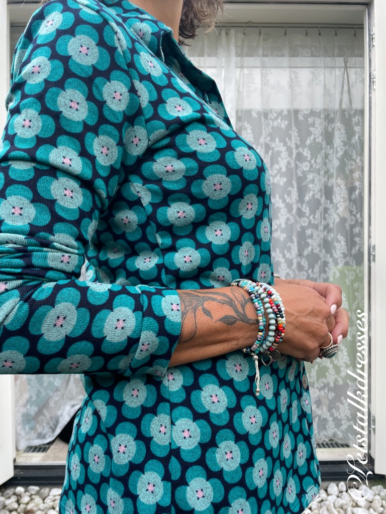 Wat ik super vind aan de blouses van Tantilly? De knoopjes! Die zitten echt heel dicht bij elkaar en hierop wil Chantal ook niet bezuinigen. Doordat de afstand tussen de knoopsgaten klein is, is de neiging tot kieren als je gaat zitten echt heel minimaal. Dat vergroot het draagplezier aanzienlijk! En de Lilou shirts hebben natuurlijk zo’n vette retro kraagje… Zo gaaf.