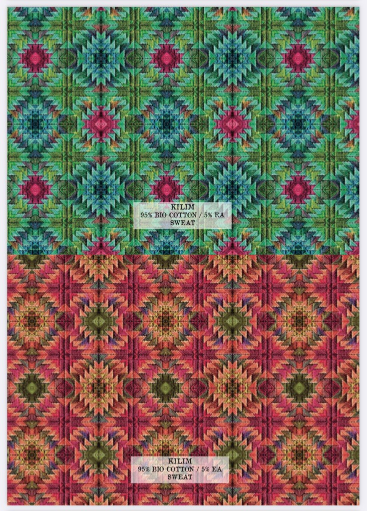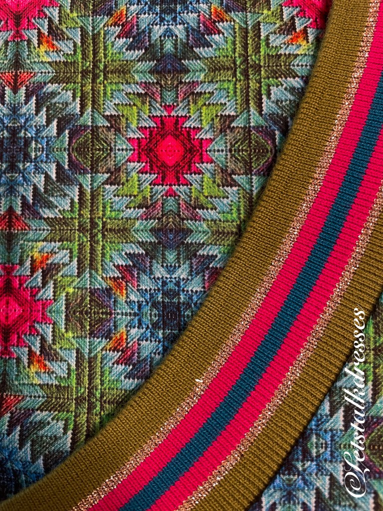 Zoals altijd, verrast LaLamour weer met de waanzinnig hoge kwaliteit van haar prints! Of ze nou printen op katoen, MicroModal of EcoVero… altijd altijd altijd zien de prints er zo prachtig uit! Geweldige kleuren en superveel strakke details. Deze Kelim Print is weer eens zo’n staaltje: kijk maar eens goed: het is een gefotografeerd borduurwerk in kelim-stijl… Zo gaaf in de details! De Kilim print komt in 2 kleuren: Groen en Rood.
