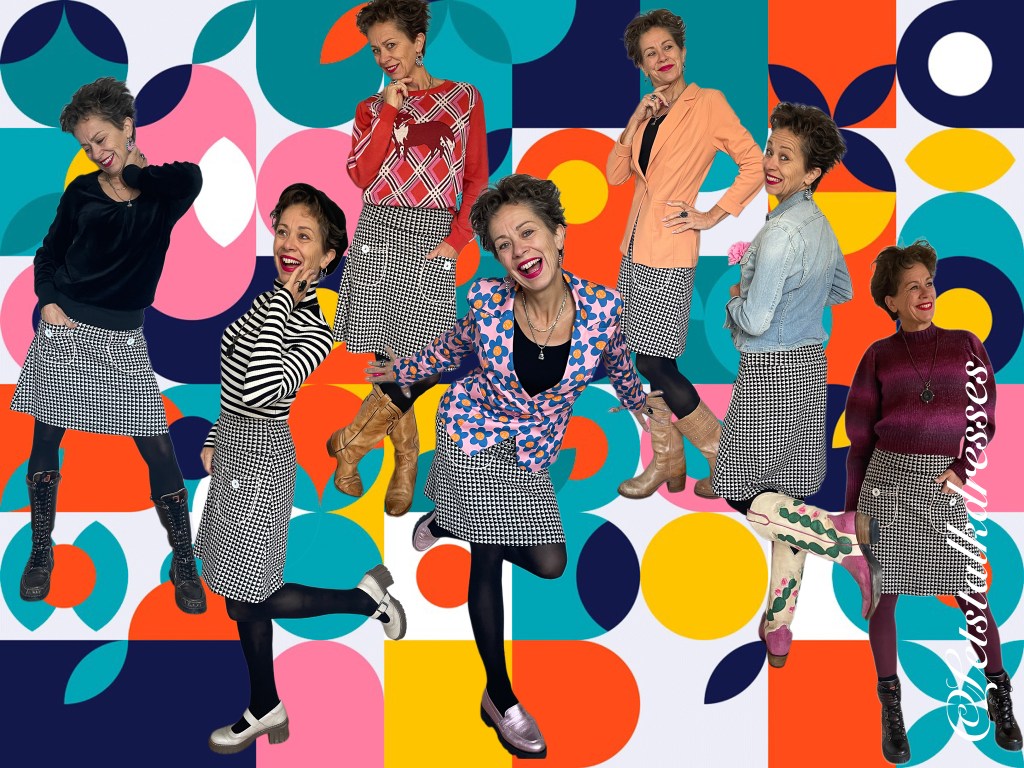Je kan hem eindeloos combineren. Draag hem funky, draag hem sportief, draag hem klassiek. Alles is mogelijk. Door deze blog heen zie je alle mogelijkheden. Voor elke stemming heeft dit rokje een toepassing. Je kan hem dragen op kantoor (zakelijk), in de KDV (speels), in het theater (classy), in de appie (dagelijks en functioneel) enz enz. Alhoewel zwart/wit, kan je dit rokje onwijs matchen met jouw kleurrijke items.