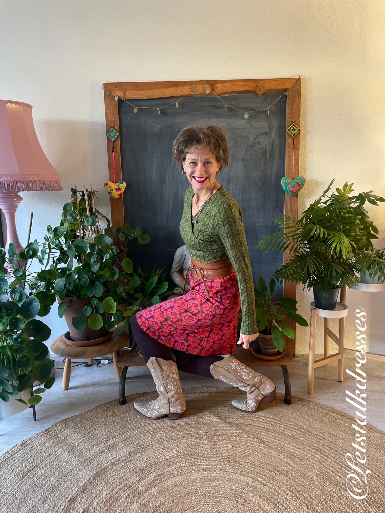 De Classic Cross Dress heb ik ook gecombineerd met de legging uit de Plain Serie. Deze maakt de combinatie iets klassieker en stoerder. En zoals je ziet, laat de dress zich ook mooi matchen met de mooie wikkelriemen. Clumpy’s zijn al sinds jaar en dag de match met LaLamour, maar een paar goeie westerboots staat weer lekker boho.