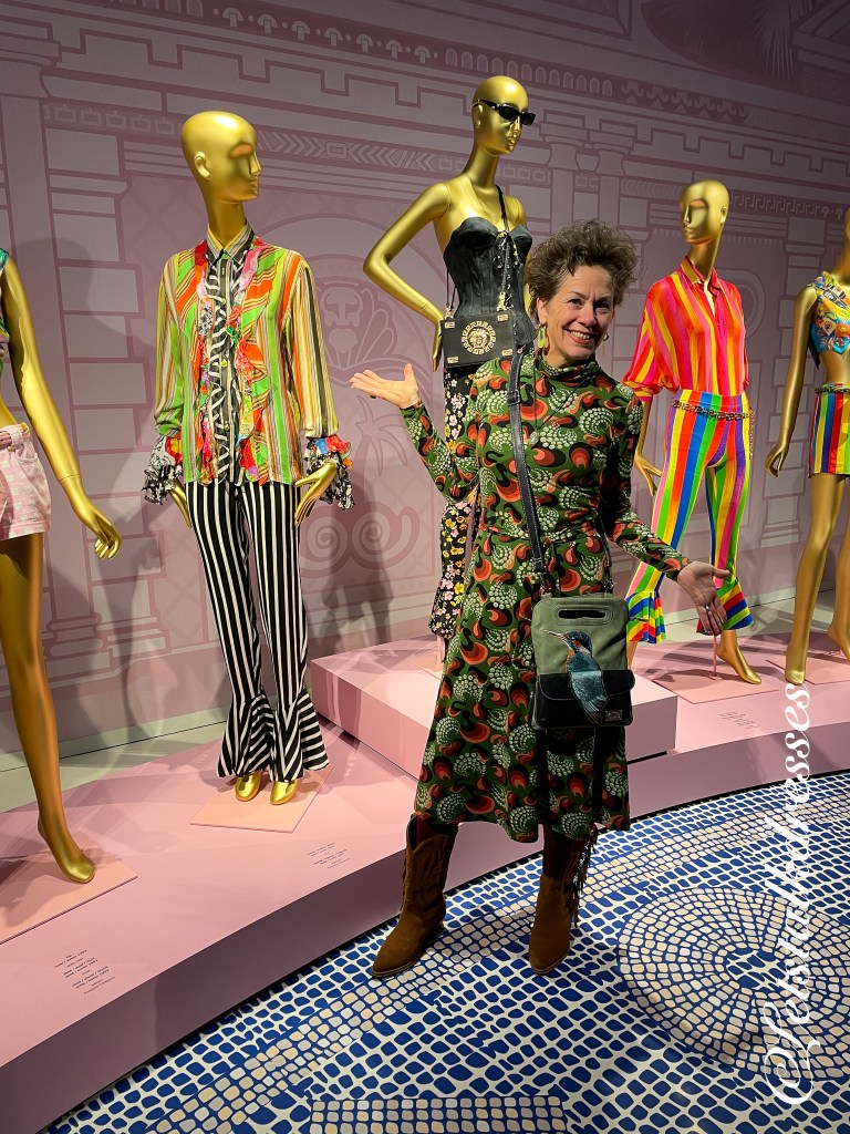 Ik heb als een kind in een snoepwinkel rondgelopen. Werkelijk: alles is zelfs nu nog fantastisch draagbaar! Ik heb zoveel moois gezien wat ik nu zo in mijn kast zou willen hangen! En ik vreet mijn schoen op als onze favoriete designers van ‘onze’ labels als bv Tante Betsy en LaLamour niet ook door Versace zijn beïnvloed op de één of andere manier! En ik ben ervan overtuigd dat zij ook zeker deze tentoonstelling zullen bezoeken (of al zijn geweest).
