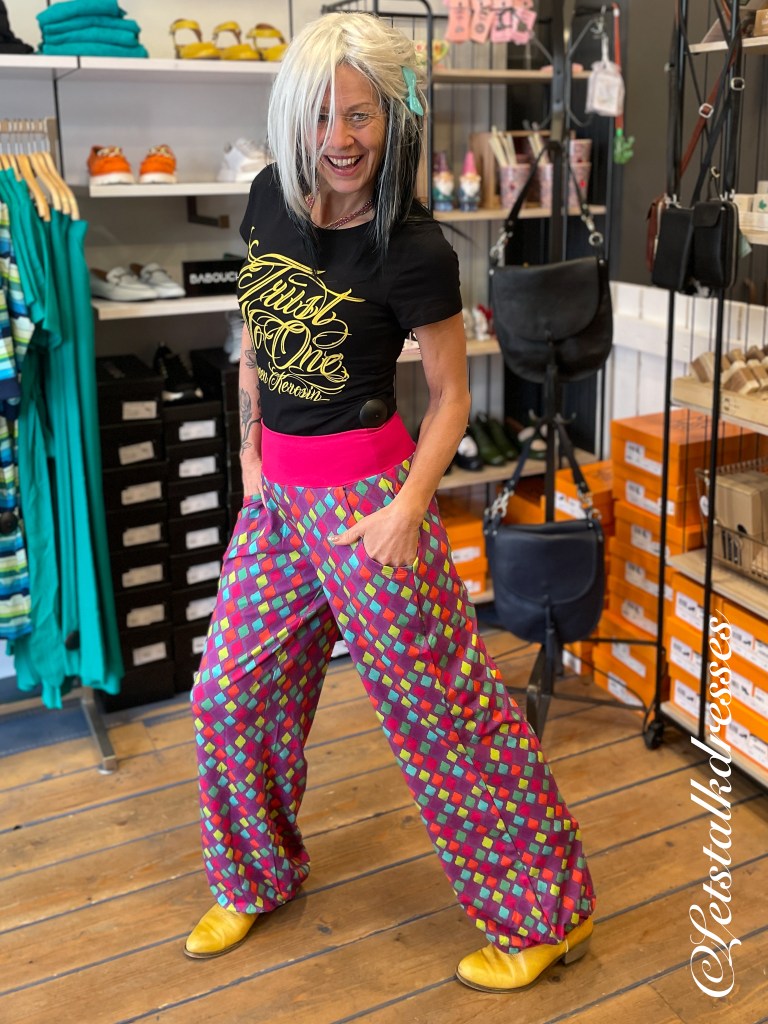 Labels die nu prominent in de winkel hangen zijn: MARGOT by MWM, Blutsgeschwister, LaLamour Fashion, King Louie en Tante Betsy. Er zijn nog meer labels hoor, maar deze sprongen er voor mij ten minste wel uit. En als het niet in de winkel hangt, maar wel op de website staat, halen de zusjes het graag (mits beschikbaar) voor je naar de winkel uit het magazijn…