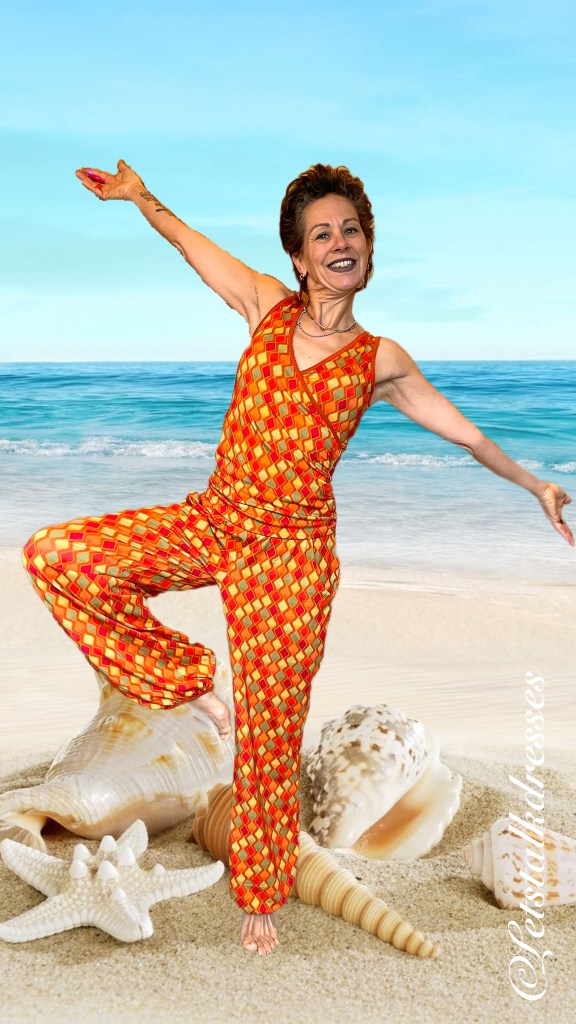 De Singlet heb ik besteld in mijn eigen maat, S. Misschien zou je een maatje groter kunnen kiezen maar omdat ik hem op de buste zo mooi vind aansluiten, heb ik dat niet gedaan. Plat opgemeten kom ik op een OTO van 38 cm, een Taille van 34 cm en een Lengte van 60 cm. Door de plooitjes en de overslag kan ik er best een tikje naast zitten qua centimeters hoor: die werken nou niet bepaald mee met opmeten🫣