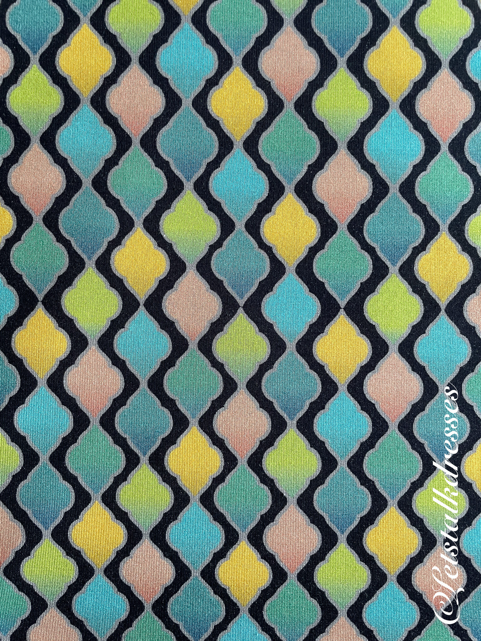 Uit mijn eigen drukkerservaring weet ik hoe lastig het is om rasters te drukken op vezel ondergrond: de rasters willen snel vollopen en dan heb je geen mooie overgang van licht naar donker meer maar zie je lijnen. De drukker van de LaLamourprints is echt van een hele hoge kwaliteit! Nergens zie ik dit verschijnsel in de print.