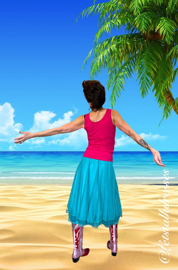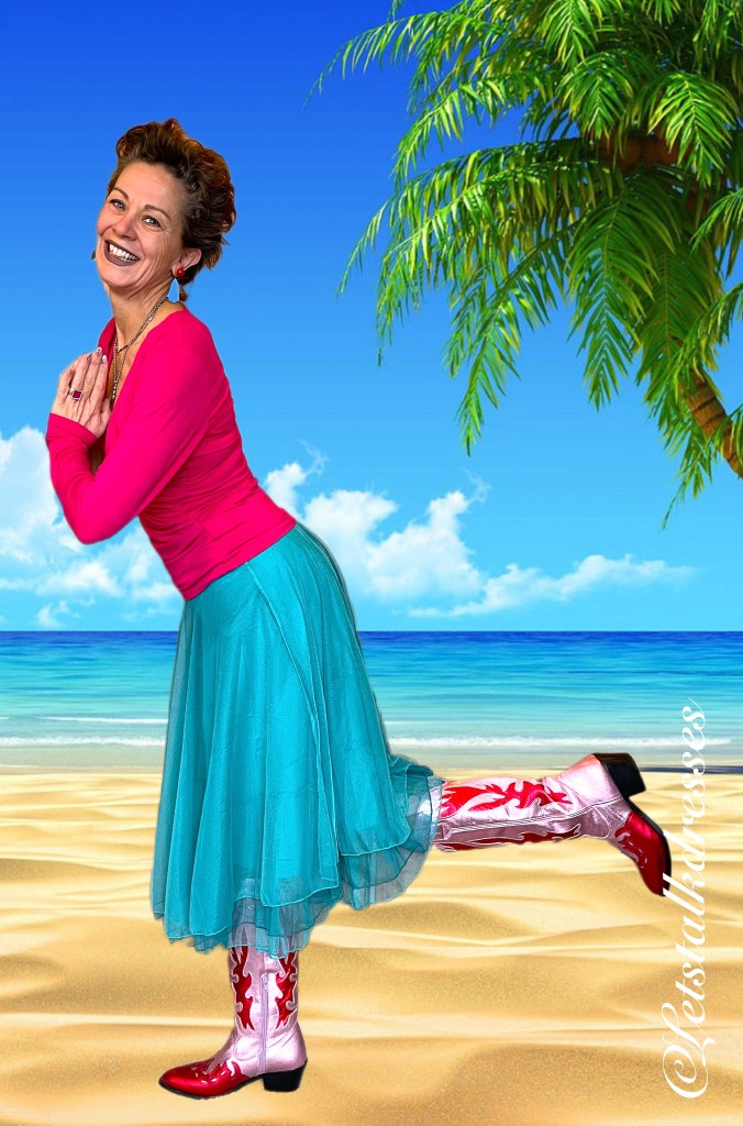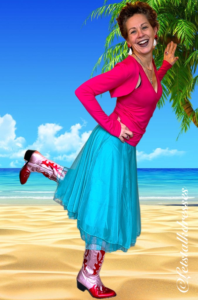 De petticoat draag je stoer met een coole laars of zelfs een stel chunky boots. Kies je voor een slippertje, sandaal of ‘blote kakkies’? Dan zie je jezelf al flaneren langs een zonnige boulevard aan het strand. En met een hakje ben je klaar om naar het theater te gaan of naar een geweldig feest. Kortom: de petticoat is echt een veelzijdig basisstuk!!
