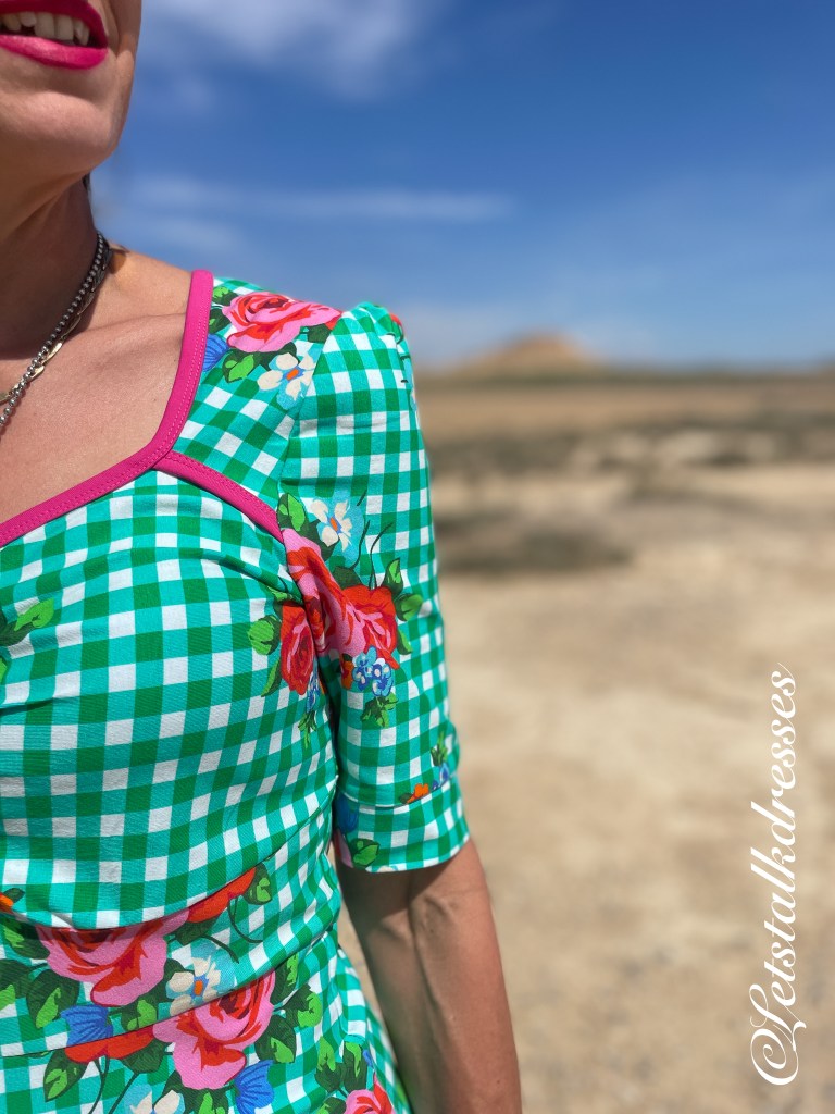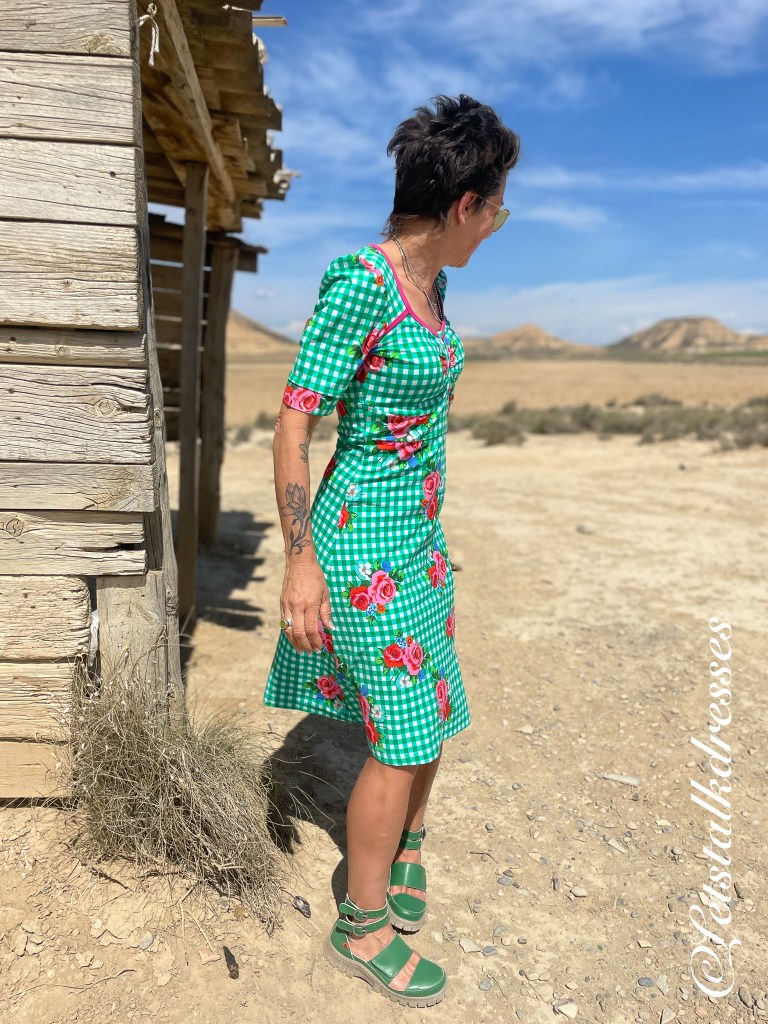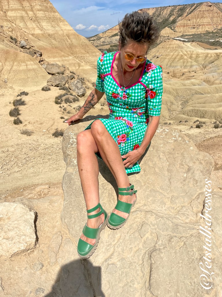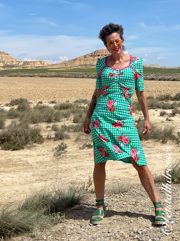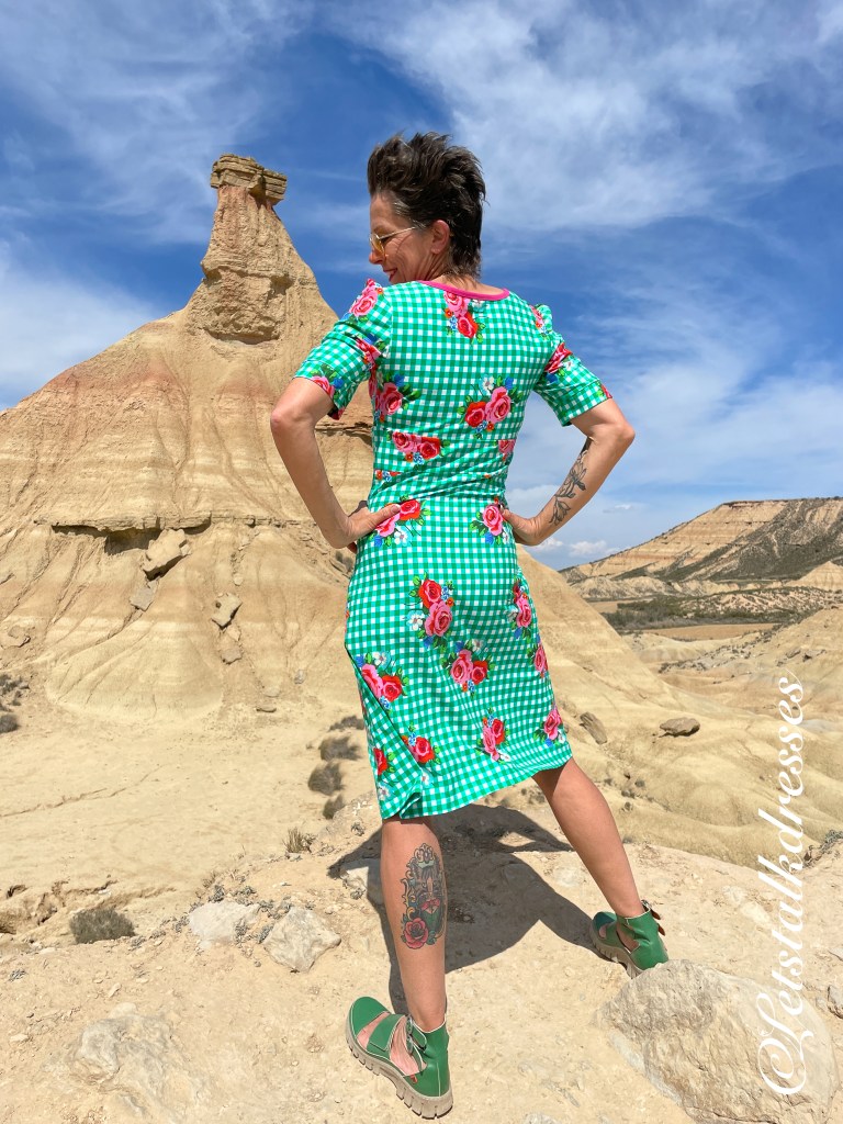 In Spanje vind je de enige woestijn die Europa rijk is: Bardenas Reales. Een prachtig (en helaas verdwijnend) natuurgebied. Ik vond dit een uitgelezen kans om een fotoshoot te maken van deze mooie Lola Dress!! De print ademt voor mij toch een soort ‘Kleine huis op de Prairie” gevoel uit. Dat past natuurlijk fantastisch in deze omgeving.