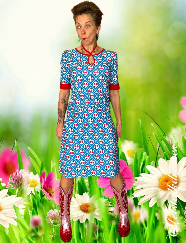 In mijn blog mag ik jullie Dress Keyhole Cherry laten zien. Dit model is een bekend model die we al enige jaren kennen. Een fijn zomers model ook! Enkele jaren geleden had ik deze dress in die mooie “Chinese” print. Die kwam toen uit in de wintercollectie maar volgens mij droeg iedereen hem in de zomer hahaha.