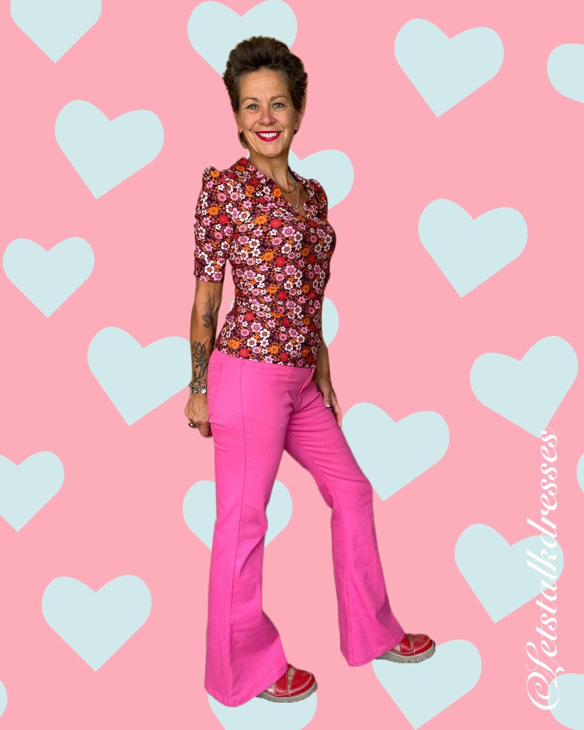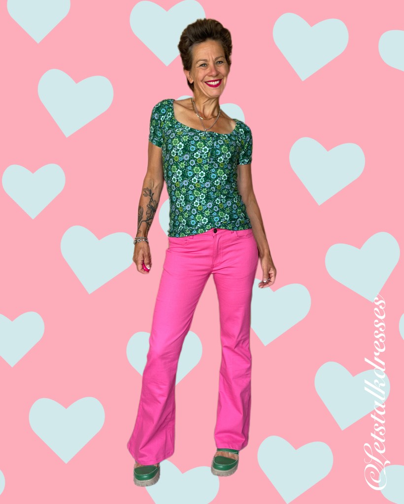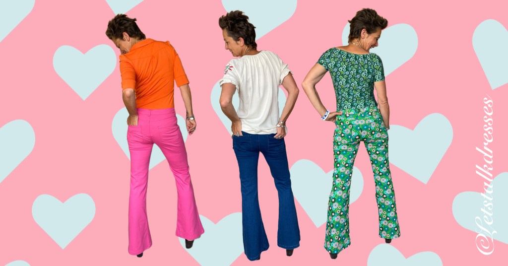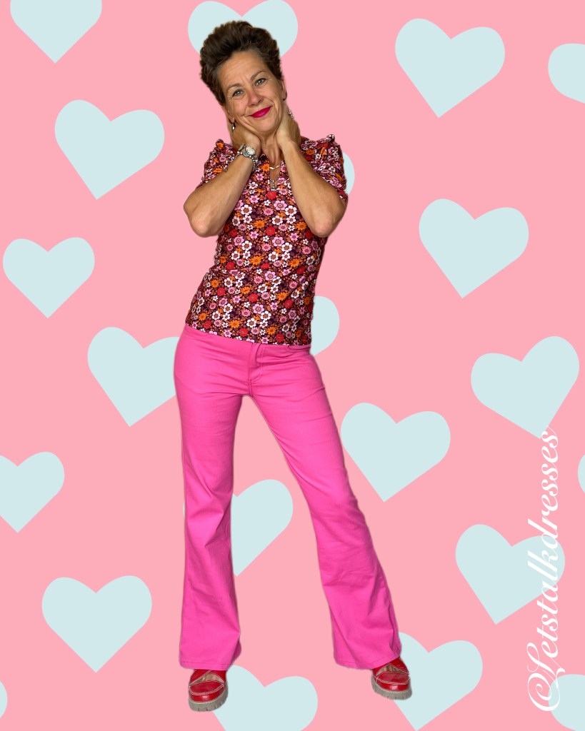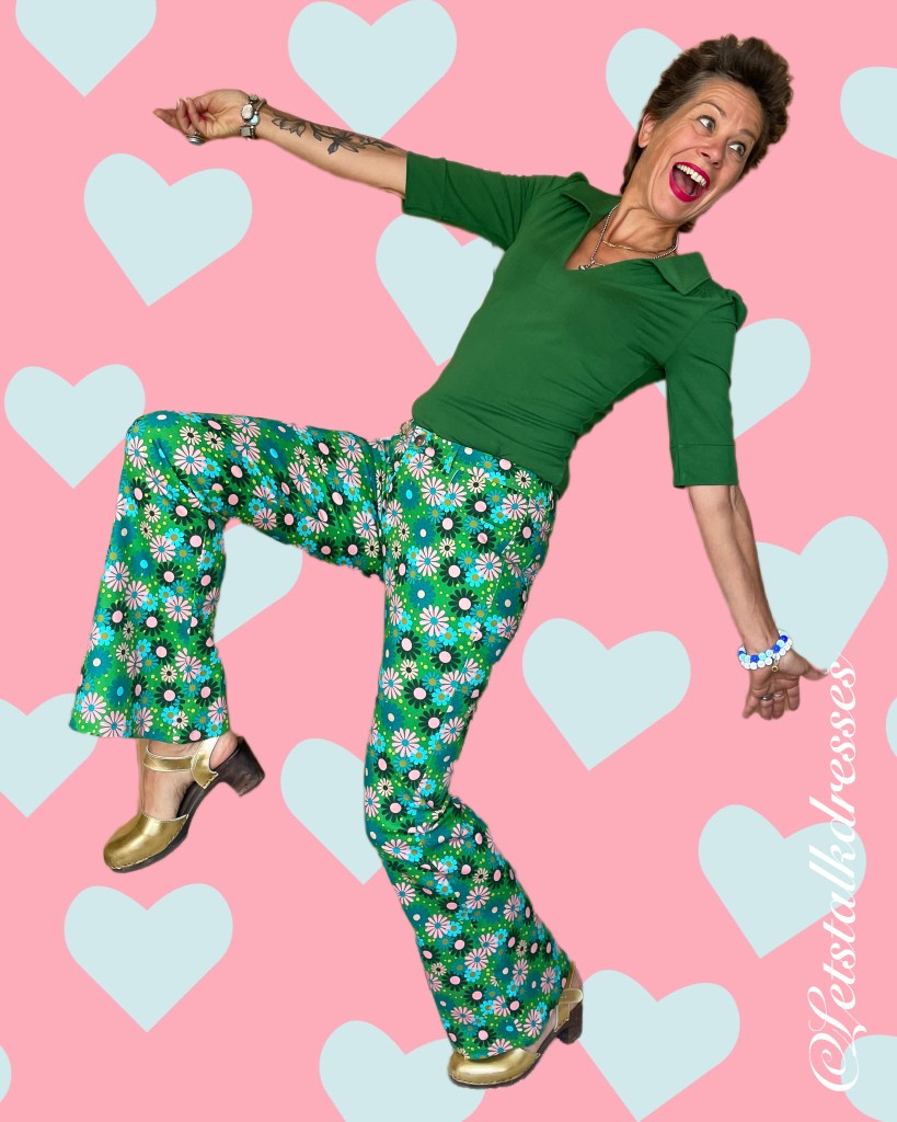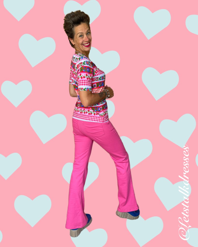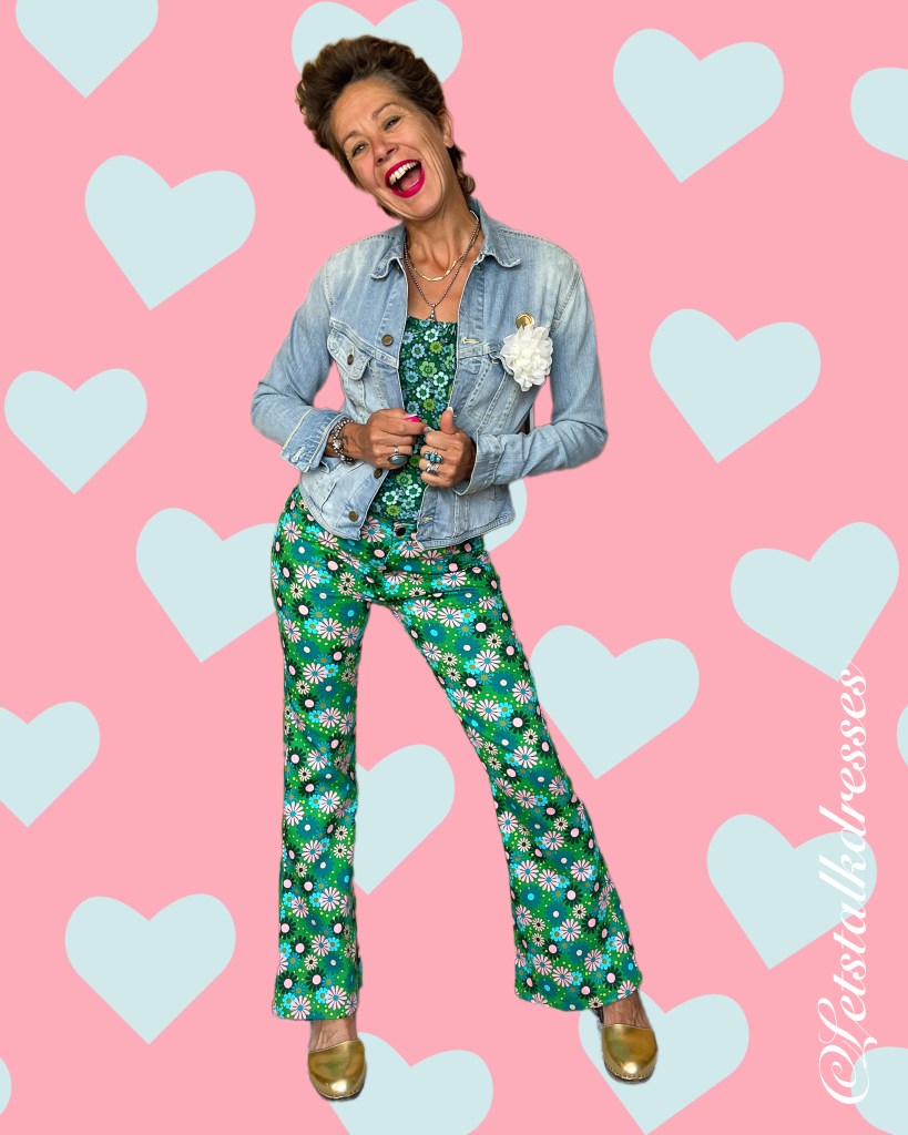 Toen nog als proef, nog niet helemaal 100% Tante Betsy maar dat is met deze zomercollectie wel even helemaal anders! Tante Betsy heeft maar liefst 4! jeans pants uitgebracht. Uiteraard geheel in de Tante Betsy stijl dus jazeker, flared, kleurtjes en prints en… een echt seventies snit!
