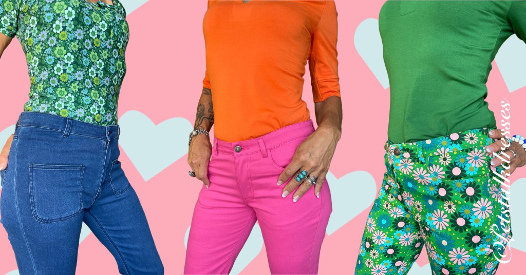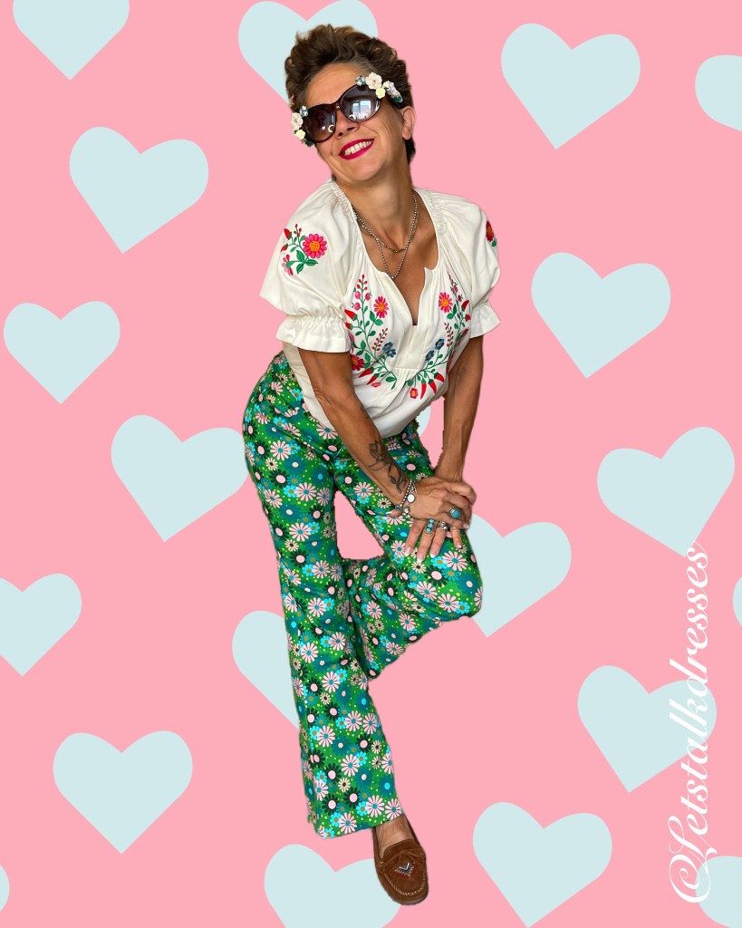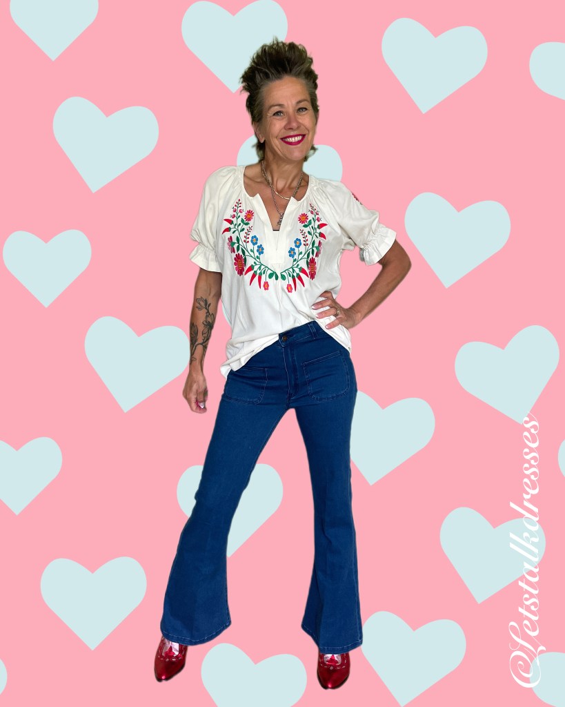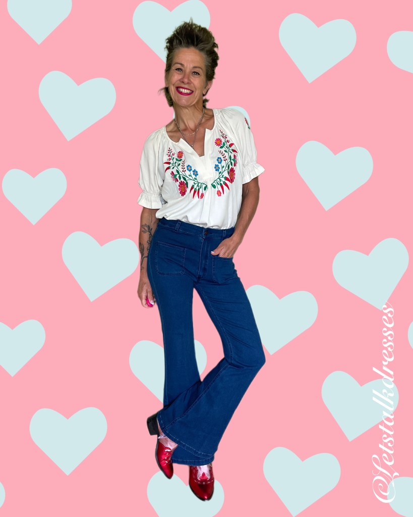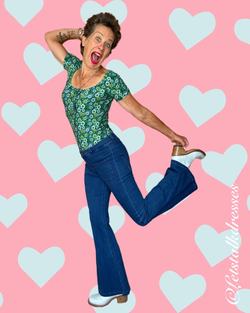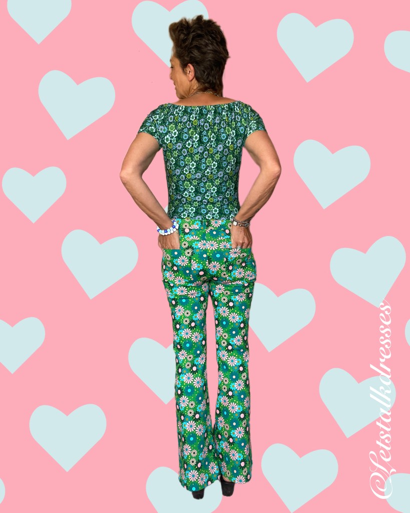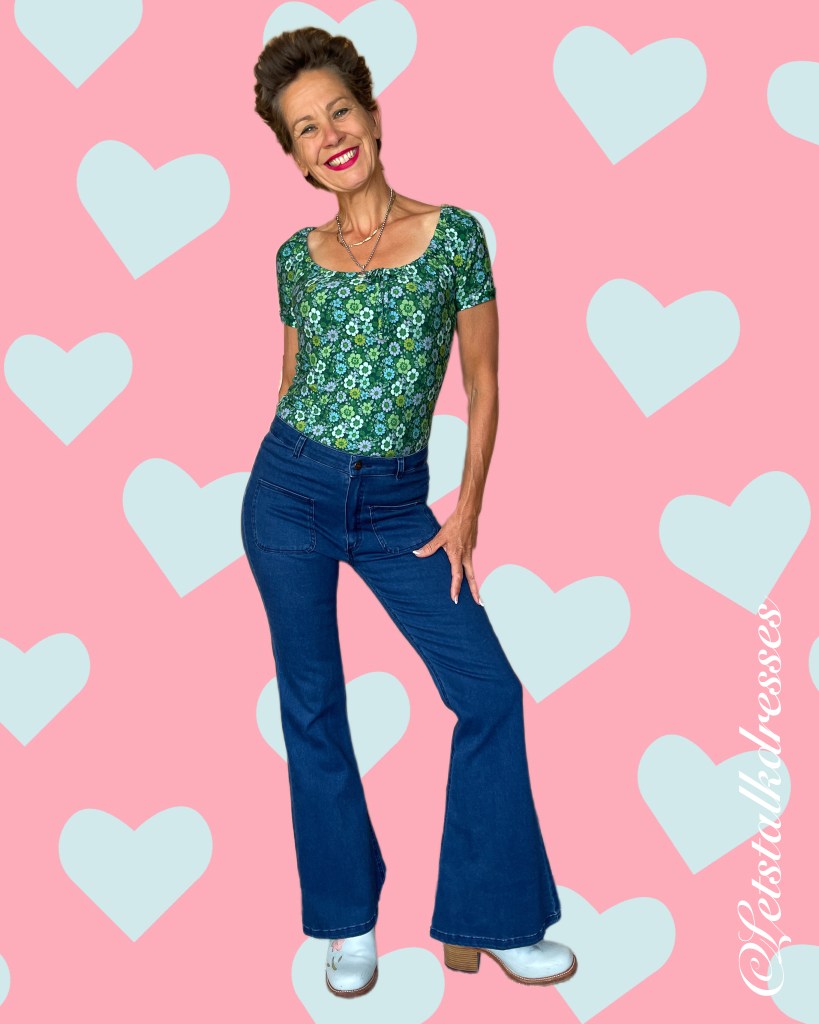 Toen nog als proef, nog niet helemaal 100% Tante Betsy maar dat is met deze zomercollectie wel even helemaal anders! Tante Betsy heeft maar liefst 4! jeans pants uitgebracht. Uiteraard geheel in de Tante Betsy stijl dus jazeker, flared, kleurtjes en prints en… een echt seventies snit!