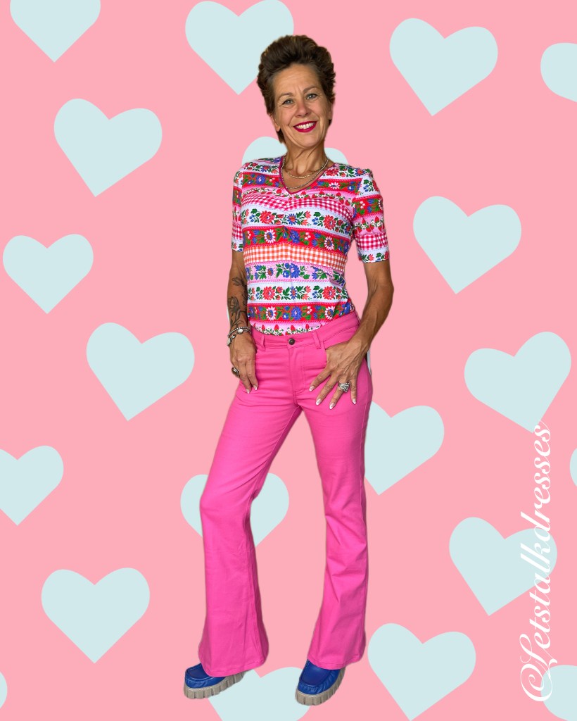 De print is uiteraard knetter gaaf! Super groovy zullen we maar zeggen! Samen met het model bootcut is het echt een hippiebroek die je verrassend veelzijdig kan combineren.