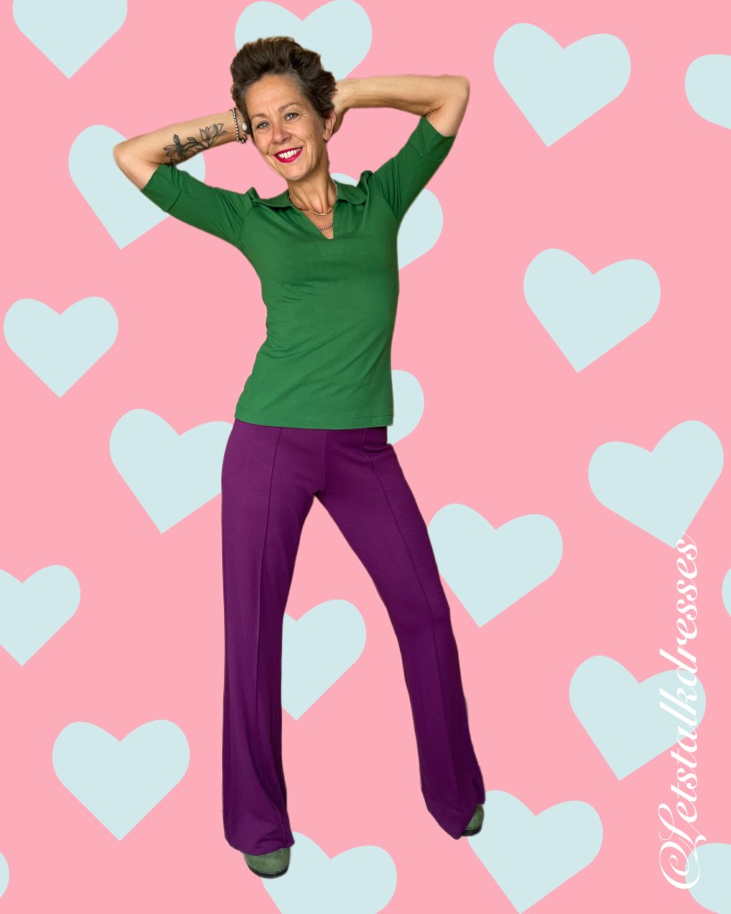 De Ultra Wide Pants komt naast Aubergine dit seizoen ook in Groen, Donkerblauw en Zwart. Ik draag hem in mijn eigen maat S.