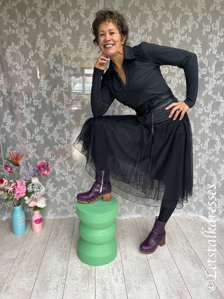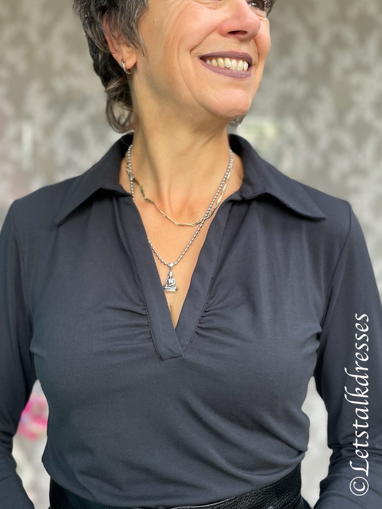 De kleur zwart neigt een beetje naar heel donkergrijs (of vaal zwart maar dat klinkt zo naar vind je niet?). Hij is, net als blouse Anna, recht van onderen. Ik vind deze top een perfect basisstuk!