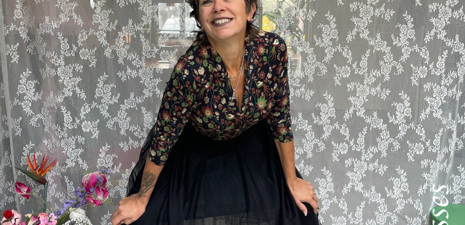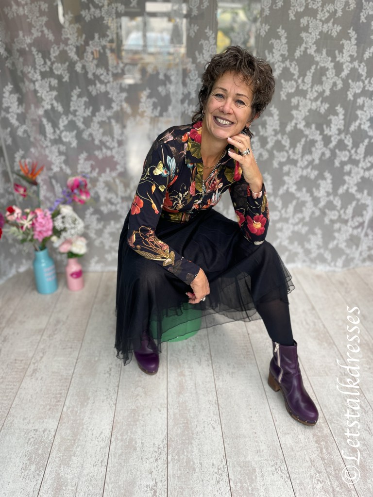 Mariken heeft onmiskenbaar een heel eigen stijl. Ook romantisch maar minder frivool. Ook bloemen maar meer refined. Ook heldere kleuren maar meer donkere tinten… Mariken vond ik destijds al een stoere, sterke vrouw met een heel indrukwekkend levenspad. En dat straalt zij zeker uit in haar ontwerpen.