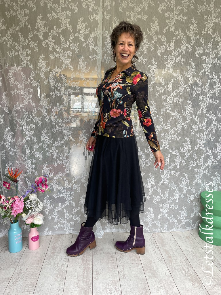 De print Autumn Garden is een schitterende print en absoluut LaLamour waardig! Prachtige details die extra knallen op de zwarte achtergrond. Deze mooie bloemenprint doet nog wel een beetje denken aan de vorige designer.