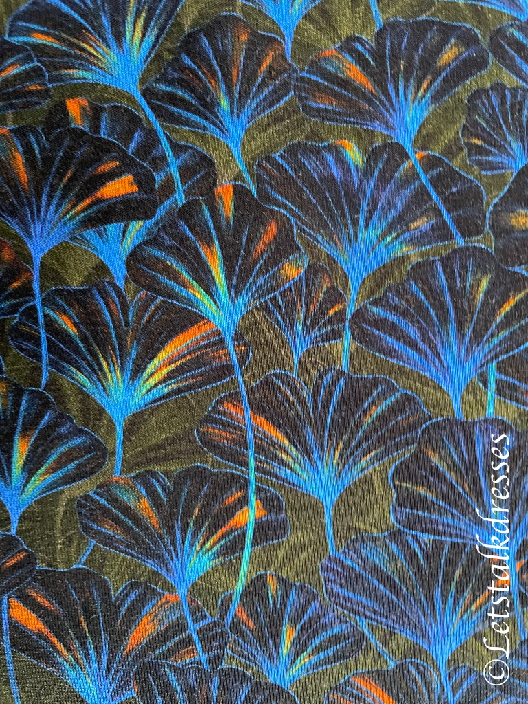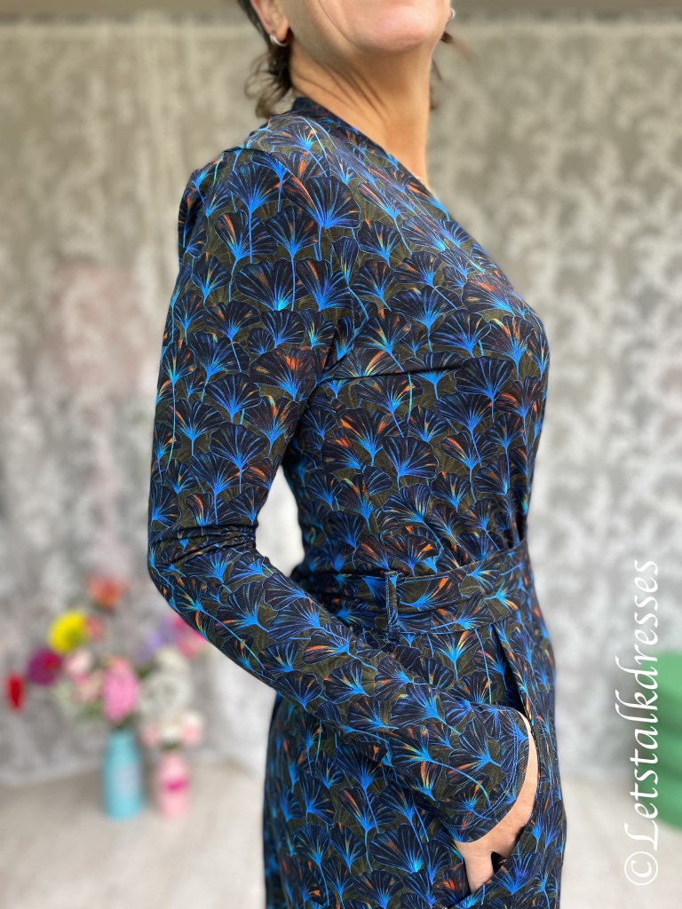 De laatste print is de Leafpattern Blue. Het donkerdere broertje van de Leafpattern Fall. Maar zeker niet minder fraai! Deze print van gekleurde ginkgo bladeren heeft een diep blauwe kleur met felblauwe en oranje accenten. De tinten zijn onwijs moeilijk te vangen op camera helaas.