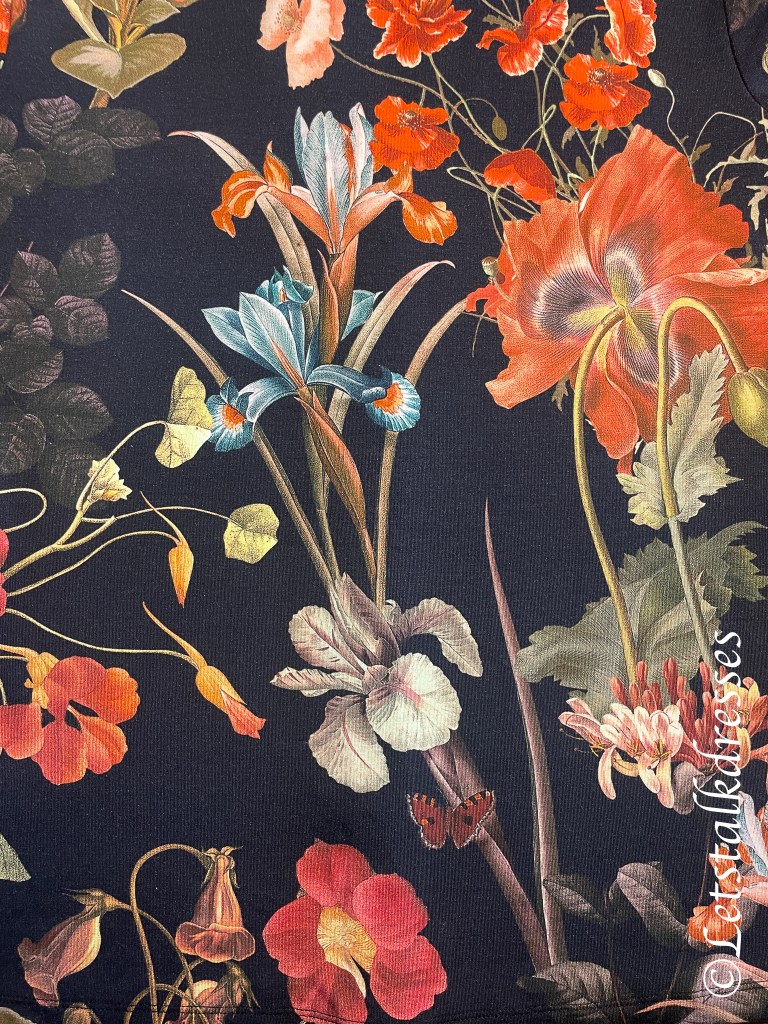 Ik heb ervoor gekozen 3 prints te laten zien. Het koningsnummer van deze wintercollectie is voor mij toch echt absoluut de print Autumn Garden! Op een diepzwarte ondergrond zijn de mooiste bloemen ‘geprojecteerd’ die bijna licht lijken te geven, zo helder zijn de kleuren.