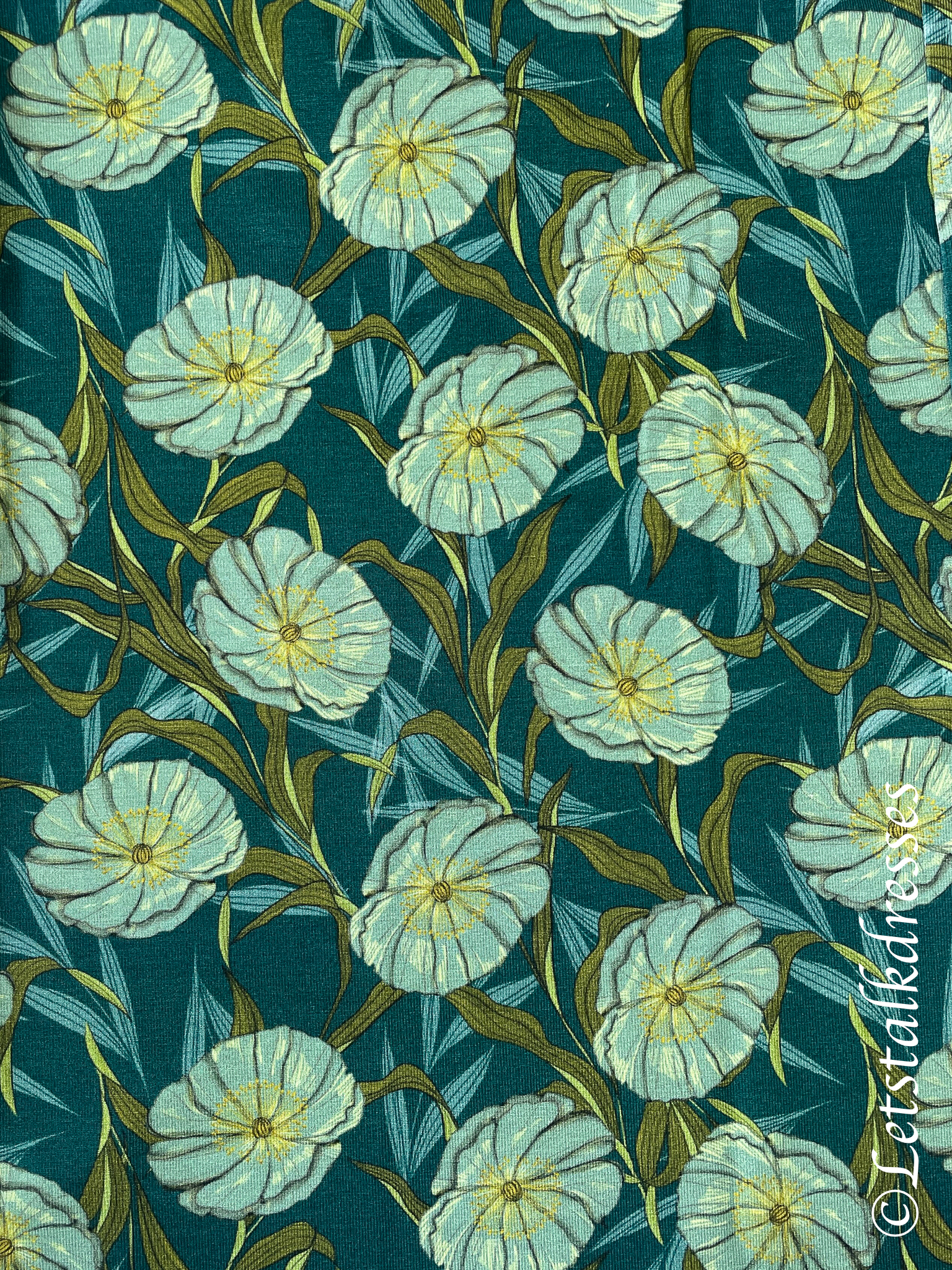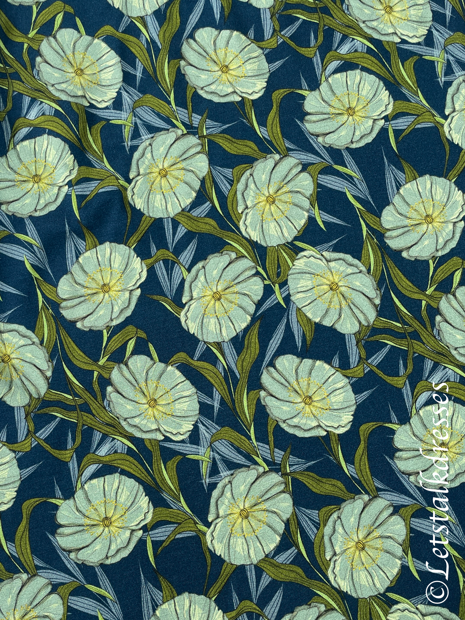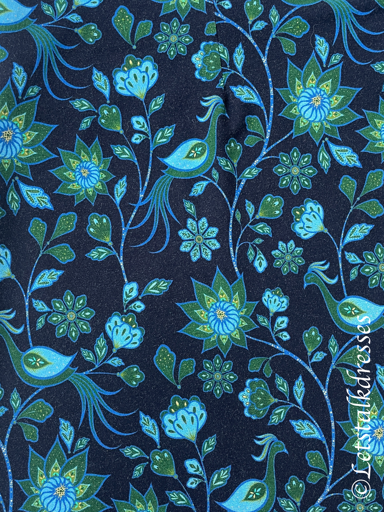 Wat ik nog wel de moeite van het benoemen waard vind, is dat deze print ook is geprint op het EcoVero viscose maar in tegenstelling tot de andere prints, ontbreekt bij deze print het glansje (net als bij de Interwoven serie). Is het storend? Nee. De print lijkt namelijk van zichzelf al te sparkelen. Dit komt door die lichte stipjes in de steeltjes en de bladeren van de bloemetjes om de vogels heen. Zeer subtiel en heel mooi.