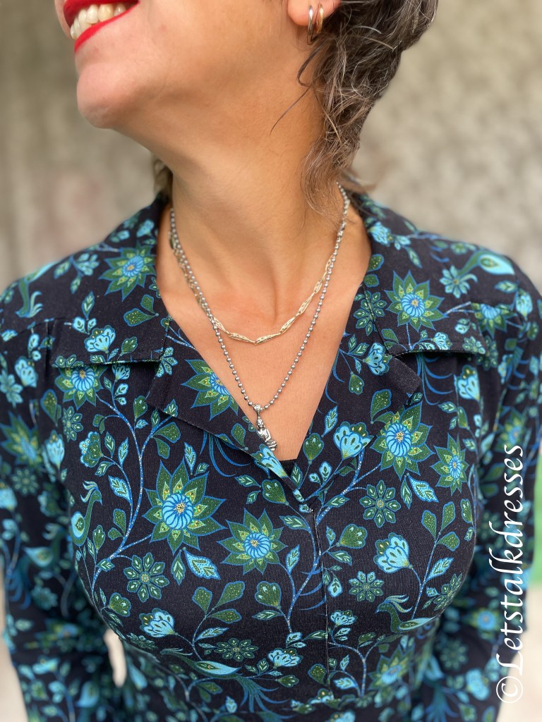 Zoals ik al zei bij de aankondiging: de Collardress heeft wel een kleine verandering ondergaan. Voorheen kwam de collardress met een knoopjes sluiting. Dress Marilyn heeft deze niet meer. Sterker nog: de sluiting is gewoon netjes dichtgestikt. Het kraagje (een mini revèrtje) is wel gelijk gebleven, evenals de verhoogde taillenaad.