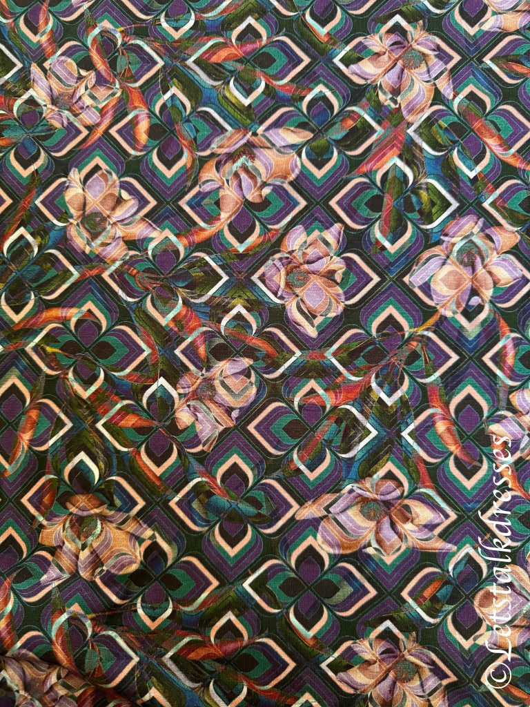 De print van deze Diana Jumpsuit verdiend extra aandacht want wat is die bijzonder! In eerste instantie zie je een soort grafische lotusbloemen maar kijk eens goed?! Zie je het? Er zit een laag onder en dat zijn… jawel: magnolia bloemen in fotoprint!!! Hoe cool is dat zeg! De kleuren zijn wat gedekter maar je zien onmiskenbaar de Plum (soort oudroze) tint. Deze print is zowel hysterisch als heel rustig. Hoe Mariken dit bedacht heeft is mij een raadsel maar het werkt wel!