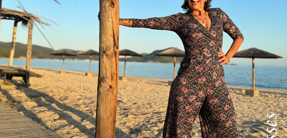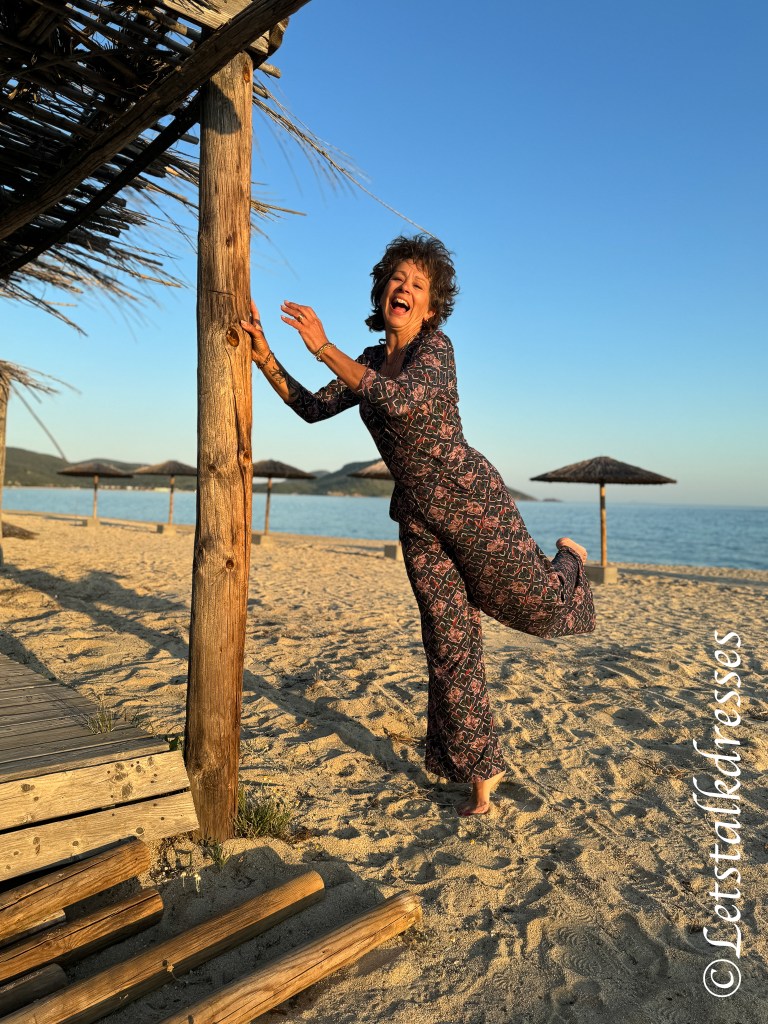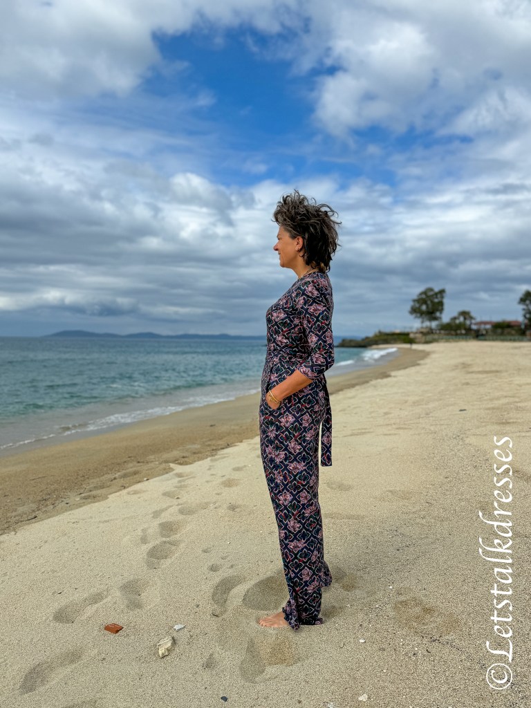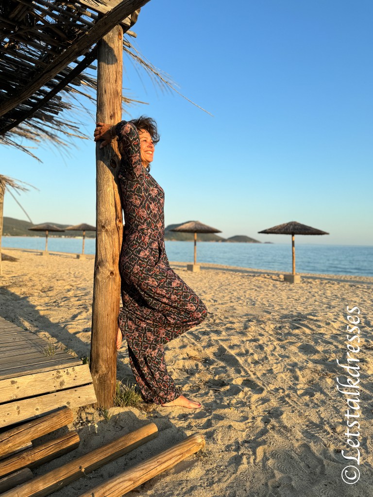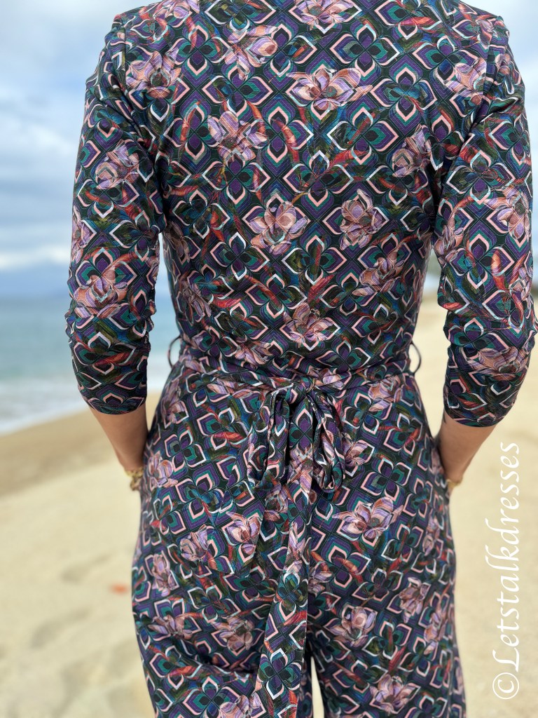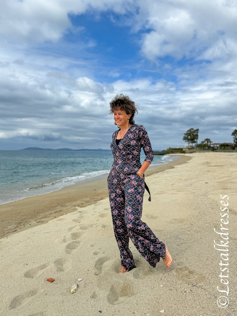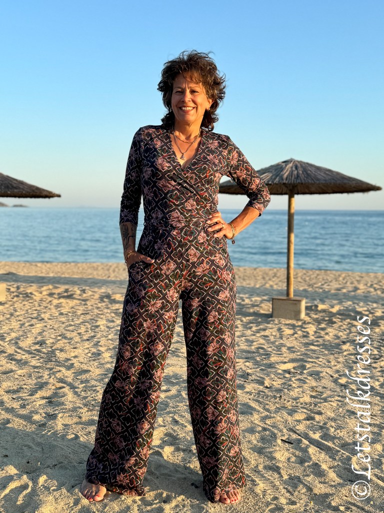 Het lijfje heeft altijd een mooie overslag die (en dat is wellicht het enige mindere puntje van deze Jumpsuit) wel behoorlijk wijd open valt. Om je meer comfy en veilig te voelen kies je toch snel voor een hemdje eronder. Ik heb de fotoshoot 2x gedaan: in het prachtige avondlicht zonder hemdje en in de koele ochtendzon met hemdje.