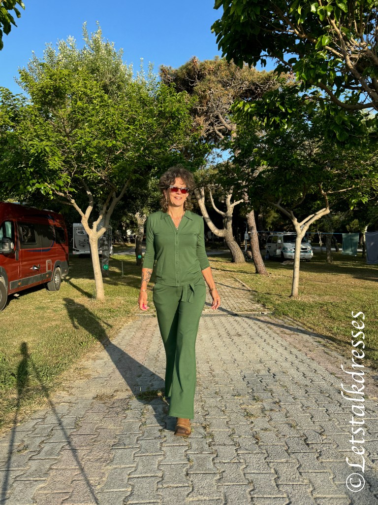 En, ben je nou helemaal geen printjesfan? Ook dan kan LaLamour echt jouw label zijn! Zo enorm betrouwbaar en maatvast zijn niet alle kleine labels is mijn ervaring. Ik koos ervoor om de Sue Trousers Green dan ook eens alleen te combineren met de Lena Blouse in Plain Green. Zo zie je meteen hoe LaLamour ook echt heel stoer en feminien kan zijn!