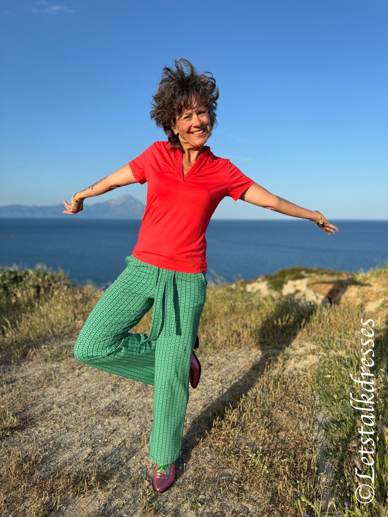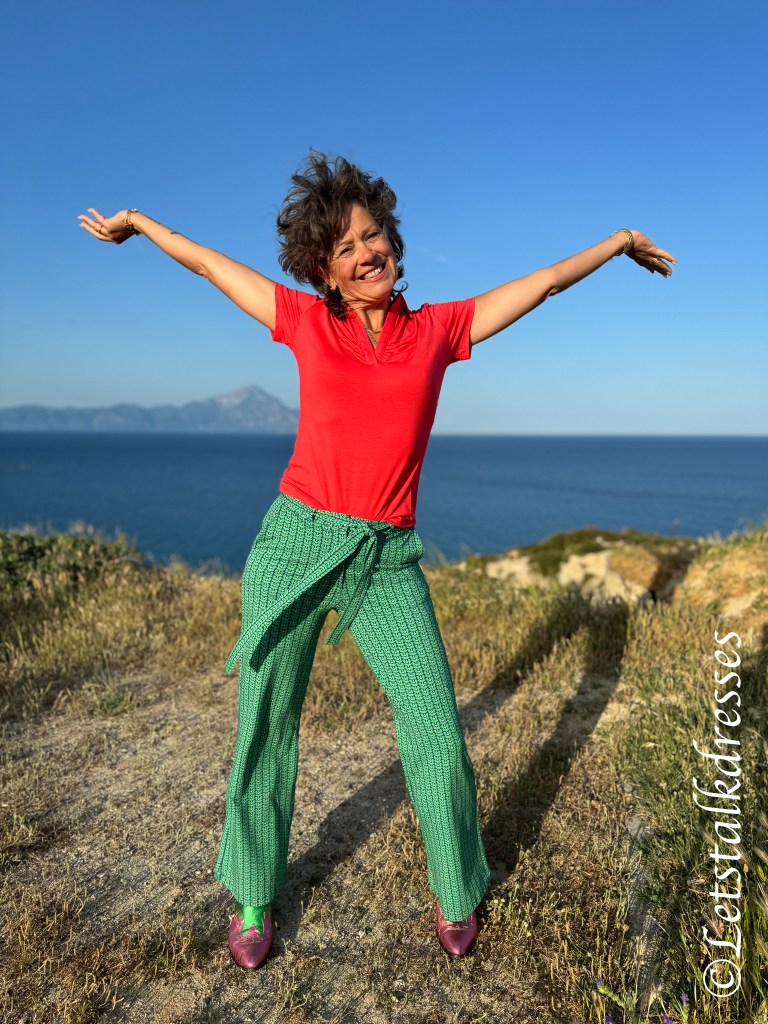 Deze mooi getailleerde blouse is in vele uitvoeringen en jersey’s gemaakt en in deze blog laat ik je de Plain Green zien. De kleur is eigenlijk best al een stoer kleurtje. En zo gecombineerd is de hele look eerder zakelijk dan bohemian. Heel anders dan je gewend bent van LaLamour.