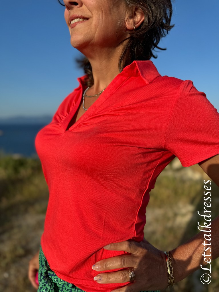 Top Suzie valt echt beduidend ruimer dan de Butterfly top. Het is echt een makkelijk draagbaar shirt die eigenlijk altijd goed is. Top Suzy vind ik ook weer mooi op maat vallen. De mouwtjes zijn lekker zomers kort, niet zoals je tegenwoordig wel vaker ziet, net boven de elleboog vallend maar gewoon: hoppa, kort! En, met warm weer ook niet onbelangrijk: lekker wat losser zodat het luchtig draagt.
