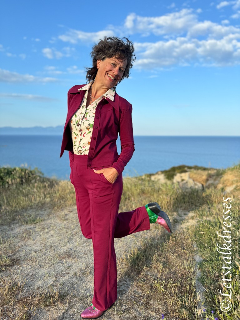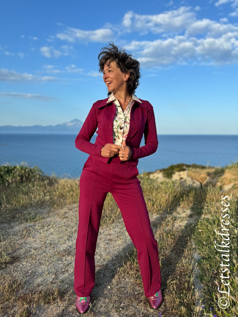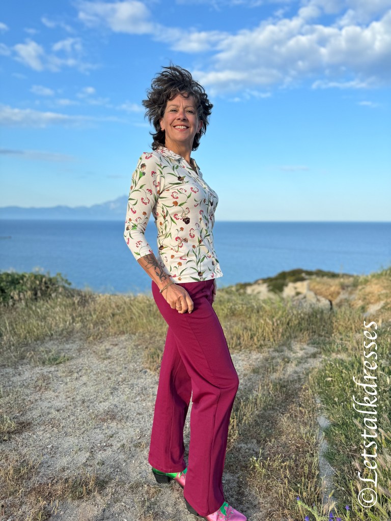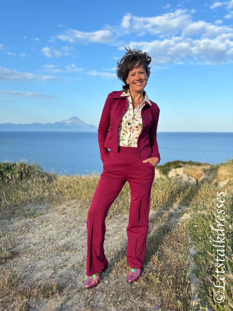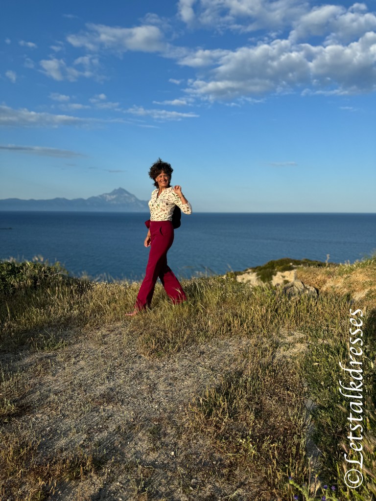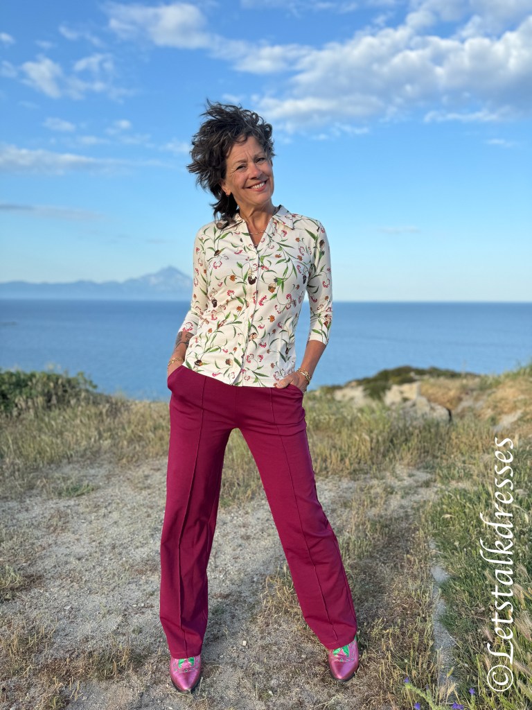De Charleston print vind je terug in de Loose Shirt variant, in de Milly-Dress en de Chrissie-Cross-Dress. De Lena Blouse die ik laat zien vond ik zo waanzinnig mooi staan op het Plum kleurige pak die ik in mijn vorige blog liet zien, dat ik deze dus ook absoluut mee wilde nemen naar Griekenland.