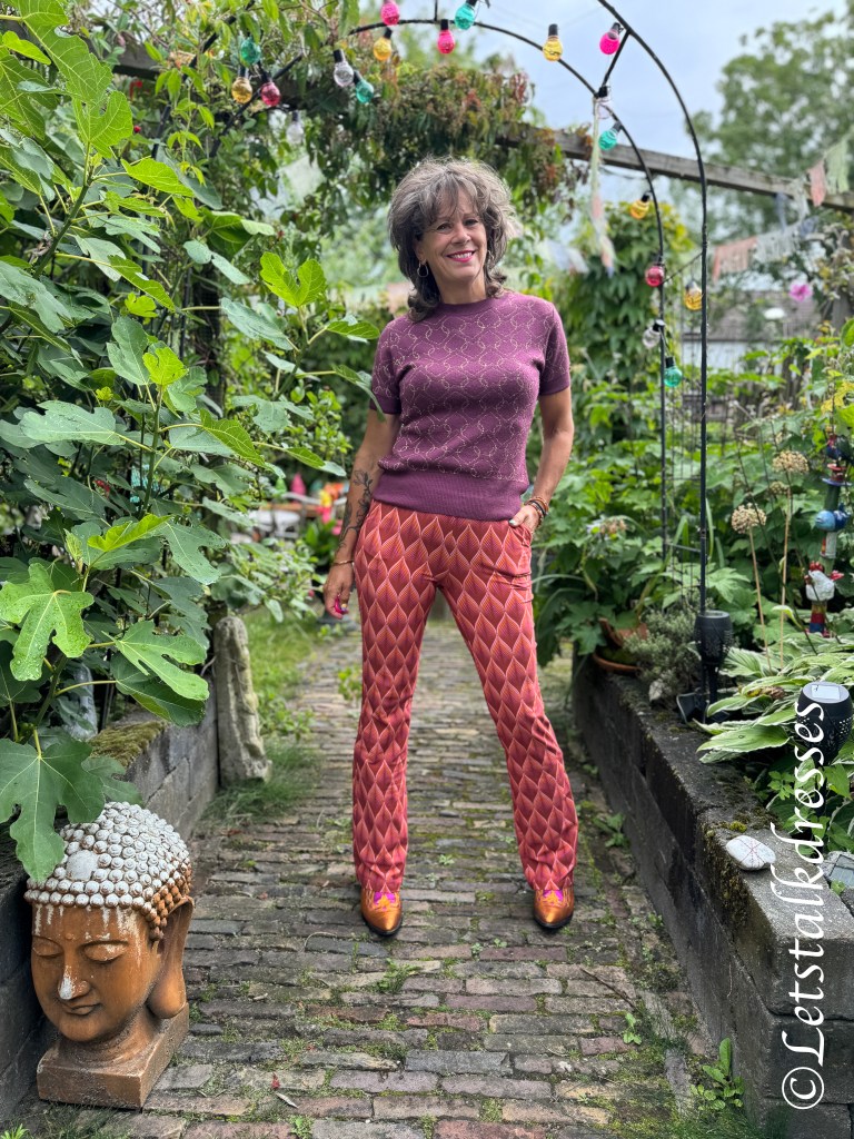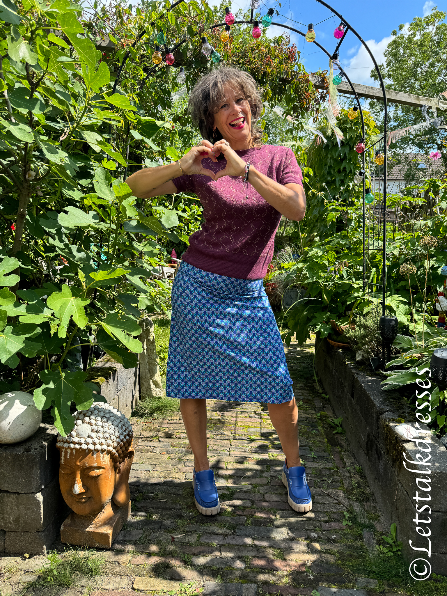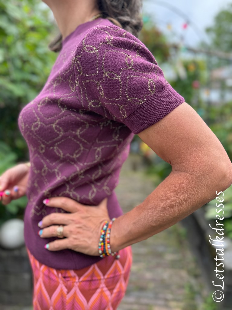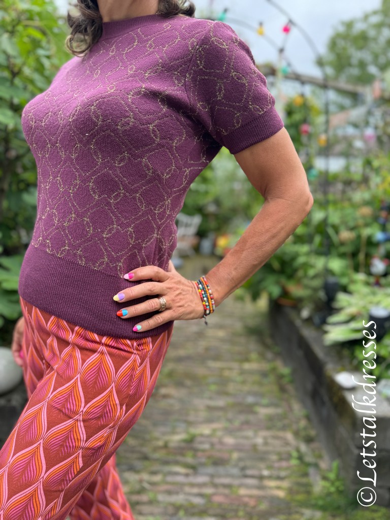 Sweater Hearts is uitgebracht in 2 kleuren; zwart en aubergine. Ik zag meteen de combinatie met deze eggplant sweater en het LaLamour pak dus was de keuze niet moeilijk. Inmiddels heb ik die combi al meerdere keren gedragen afgelopen (koele) zomer.