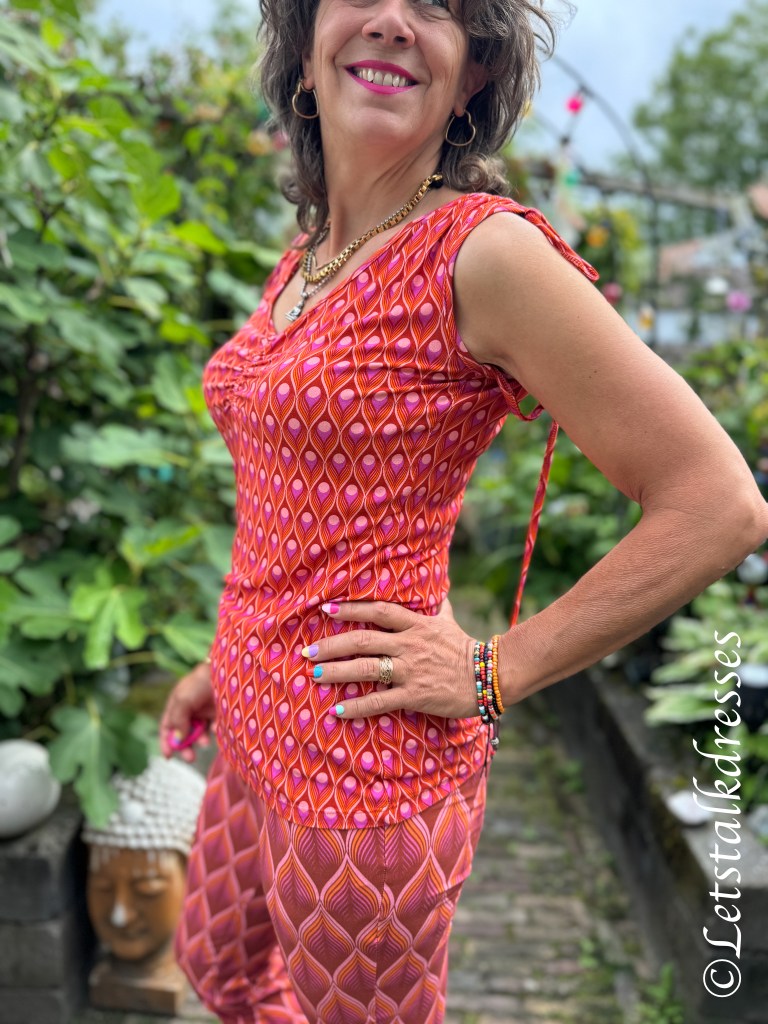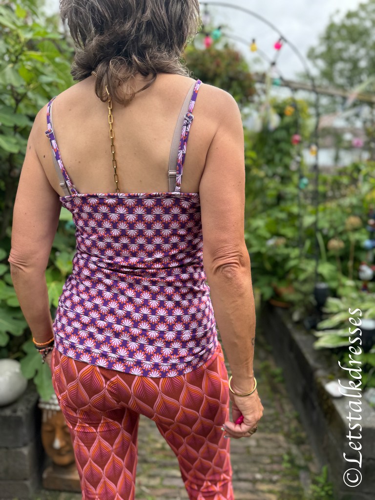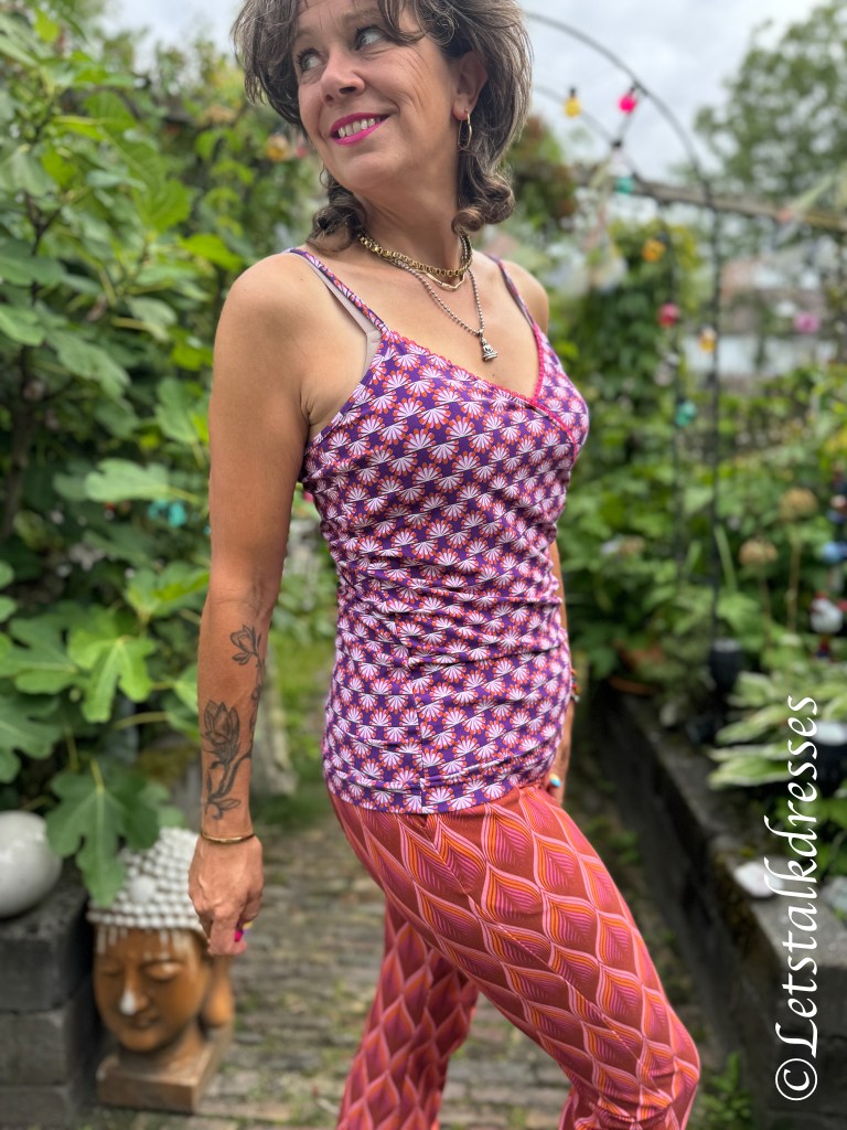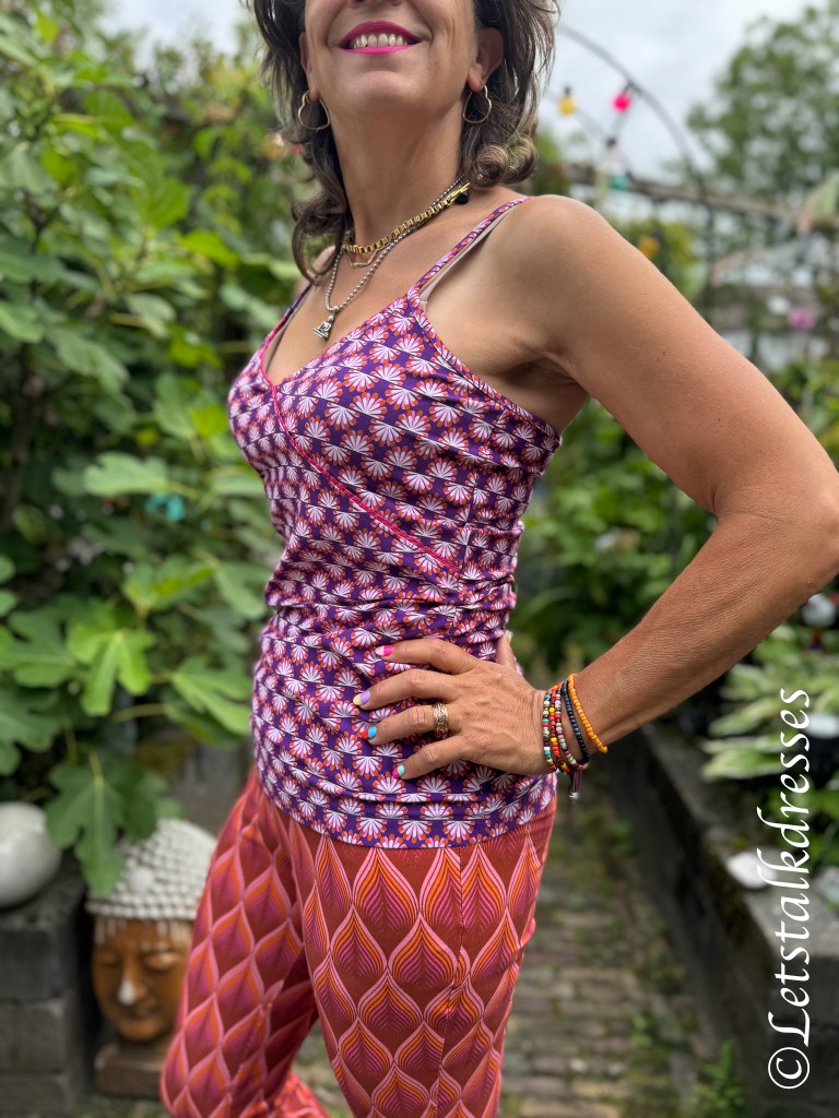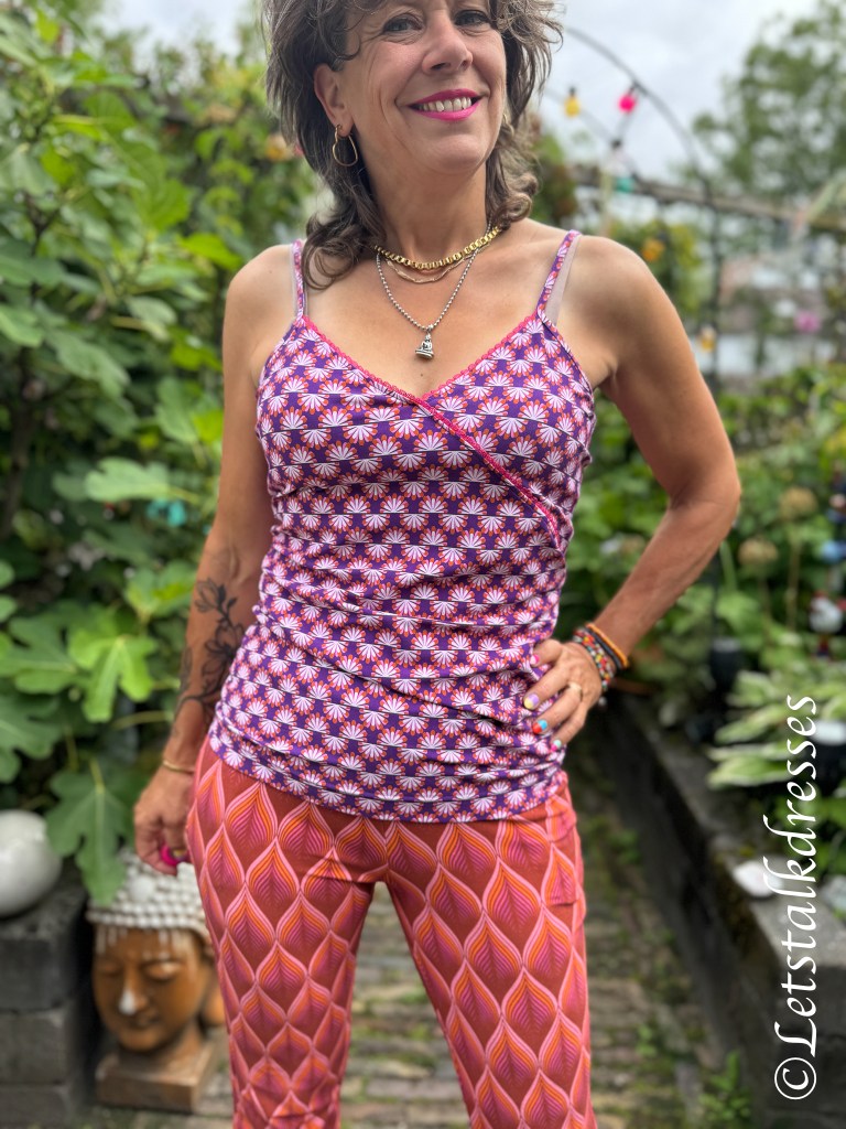 Deze String Top is ook uitgevoerd in de Onion Purple print, dus ook in het mooie viscose. En (nog maar net uitgekomen) hij is ook verkrijgbaar in de print Lush Roses. Die is dan uitgevoerd in biokatoen.