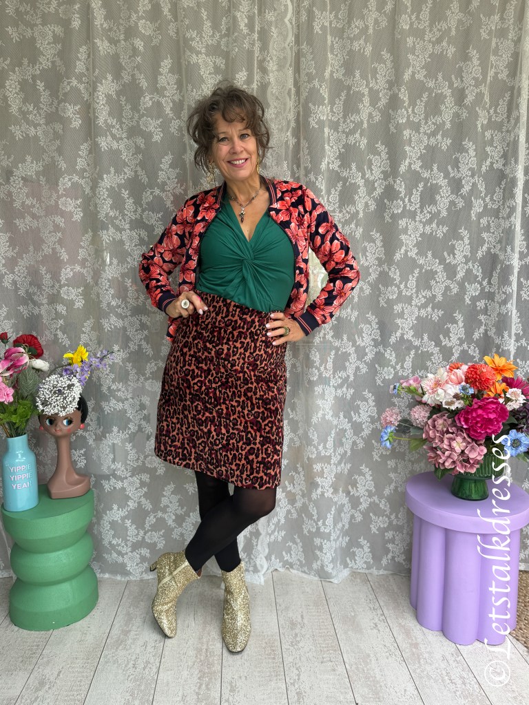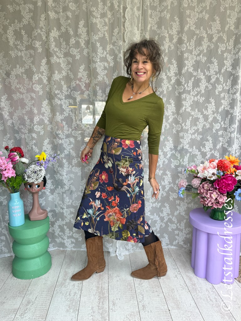 Je kan Skirt Claudia echt in meerdere stijlen dragen: casual met een vestje, zakelijk met een jasje en ook zeker feestelijk of zelfs stoer. De truc zit ‘m in de styling.
