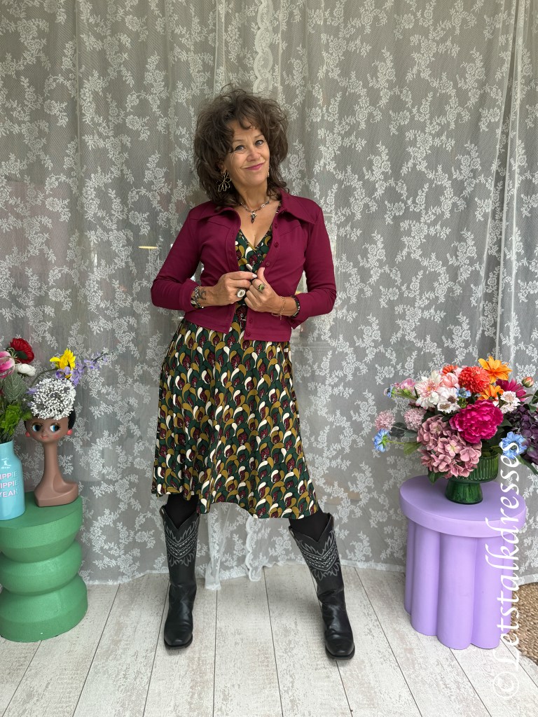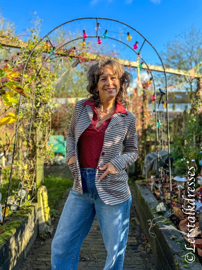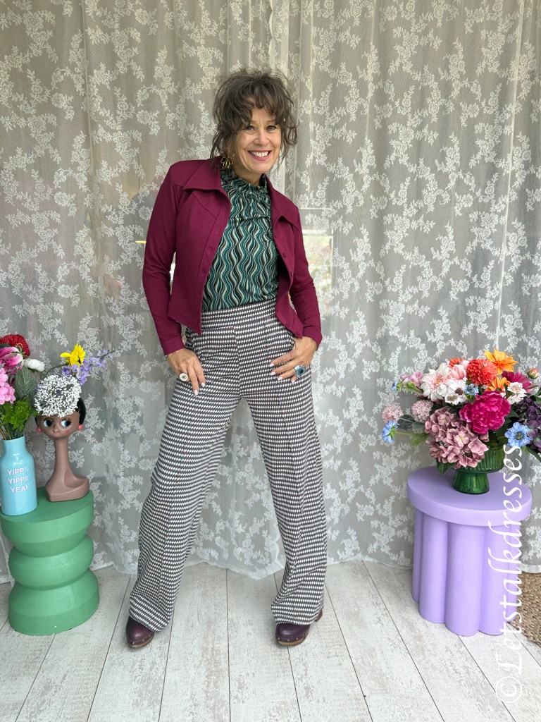 Ik wil in deze blog toch nog wel even het ultra retro jackje benoemen die ik afgelopen zomer in de blogs al liet zien: de Jacky Punto di Roma. Want ook dit seizoen is het jasje weer uitgebracht. Helaas was hij bij LaLamour in mijn maat al niet meer voorradig (niet zo gek, hij is zo gaaf). Maar ik heb nagevraagd en de nieuwe jasjes zijn exact van dezelfde kwaliteit en maatvoering. Dus heb ik in deze blogserie mijn Plum-kleur jasje gebruikt. Wel nog in maat S immers, die was in het voorjaar voor mij nog goed (en past mijn in dit jasje nu nog steeds).
