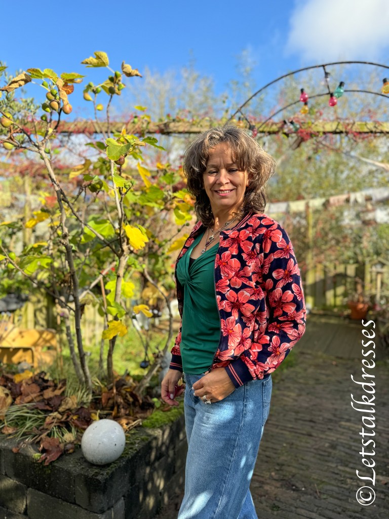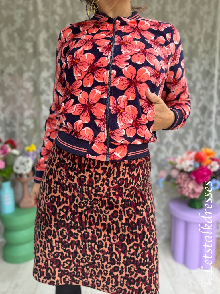 De pasvorm van dit bomberjacket is krapper dan het sweatshirt wat ik in mijn vorige blog beschreef (klik HIER). Het lijfje is wat strakker en lijkt ook iets korter. Doordat de mouwen een andere aanzet hebben (recht aan de schouder genaaid i.p.v. aangeknipt in vleermuismouw) voelt het jasje wat compacter ook,