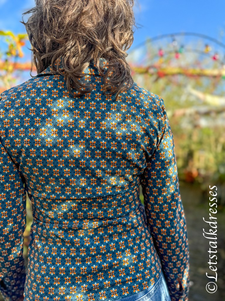 De mouwen hebben brede manchetten met een knoopsluiting. Ze zijn lekker lang, niet te strak maar zeker niet te wijd. Het model is redelijk recht, sluit mooi aan op de heup en in de taille maar is niet form-fitted. Het rugpand is 1 geheel dus geen onderbrekingen in de print.