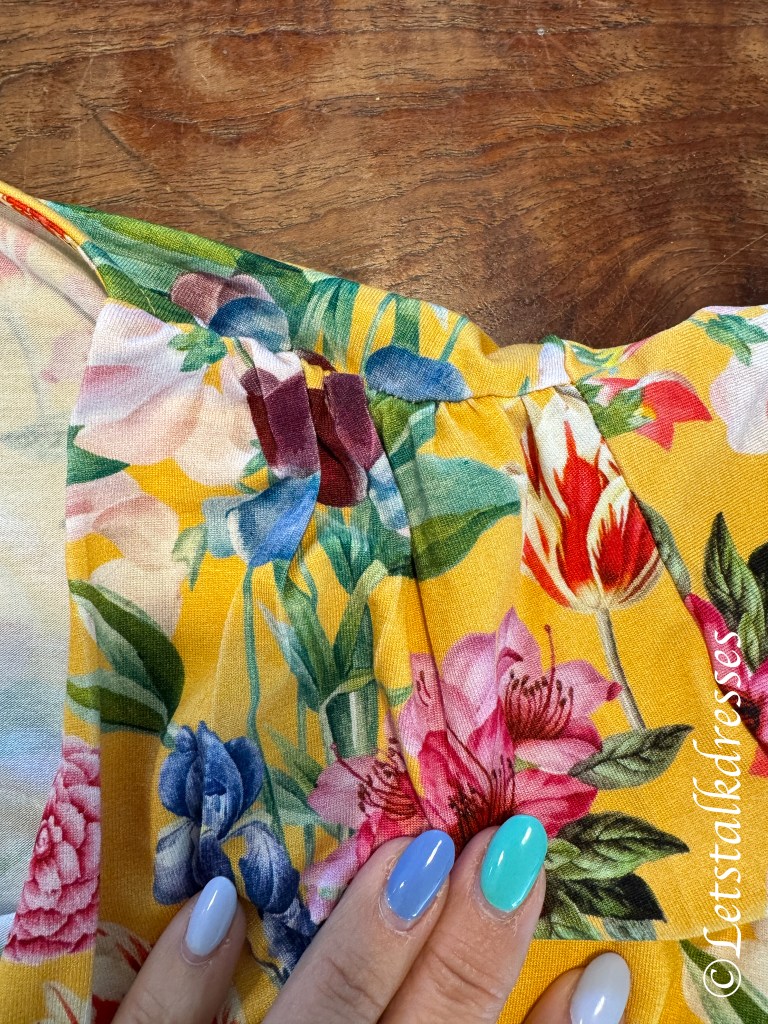 De schouders zijn geplooid wat een extra subtiel detail toevoegt aan het lijfje. Verder heeft deze jurk een slank geknipt V-halsje die wel dieper valt. Maar, omdat ie smal is, geeft het geen ongemakkelijk gevoel. En een hemdje eronder kan altijd hè😊