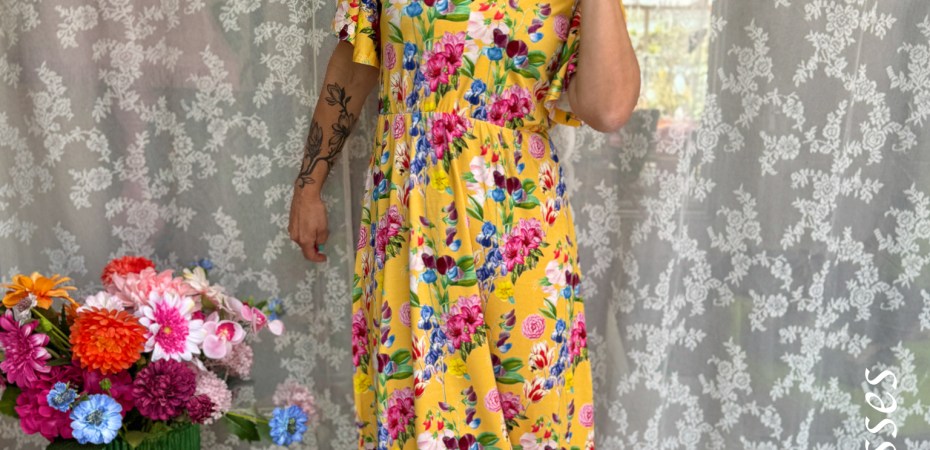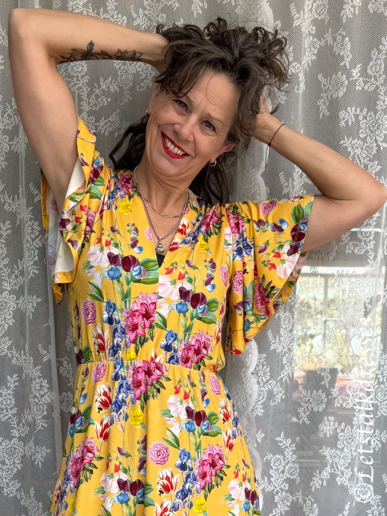 Deze jurk is een echte flaneer topper maar je kan hem zeker ook meer zakelijk dragen met bijvoorbeeld met de Nova Blazer (details beschrijf ik in een andere blog). Doordat de stof zo soepel en zomers is, zitten de vlindermouwen niet in de weg! En natuurlijk zomers af te stylen met een mooie sandaal of espadrilles…