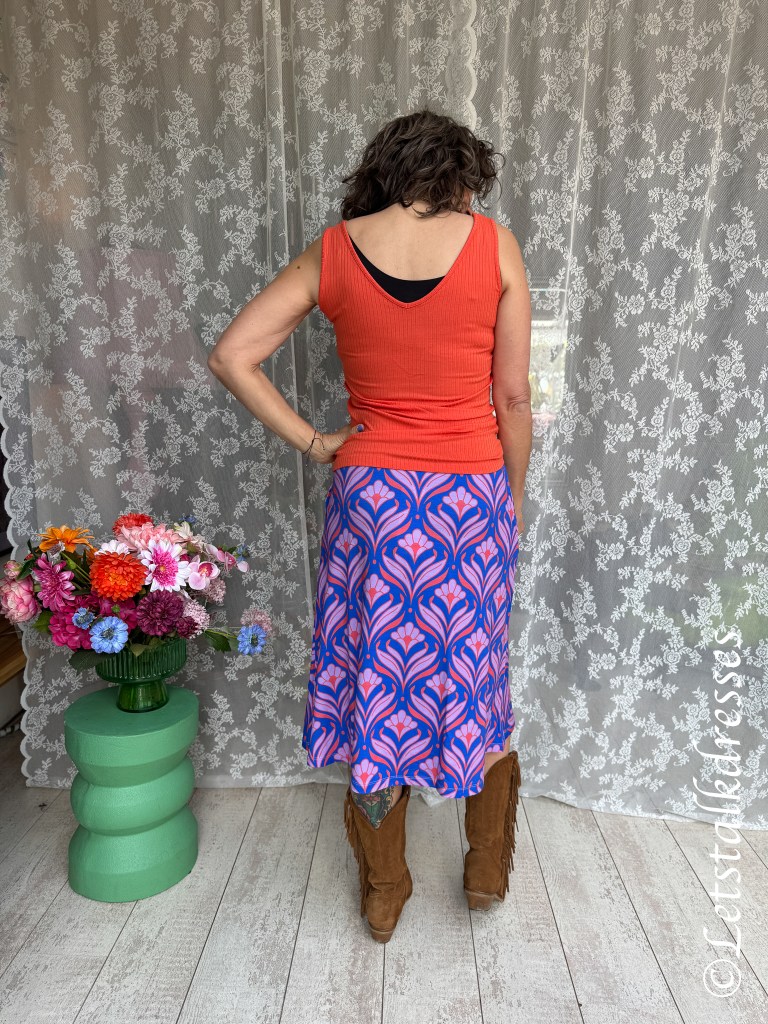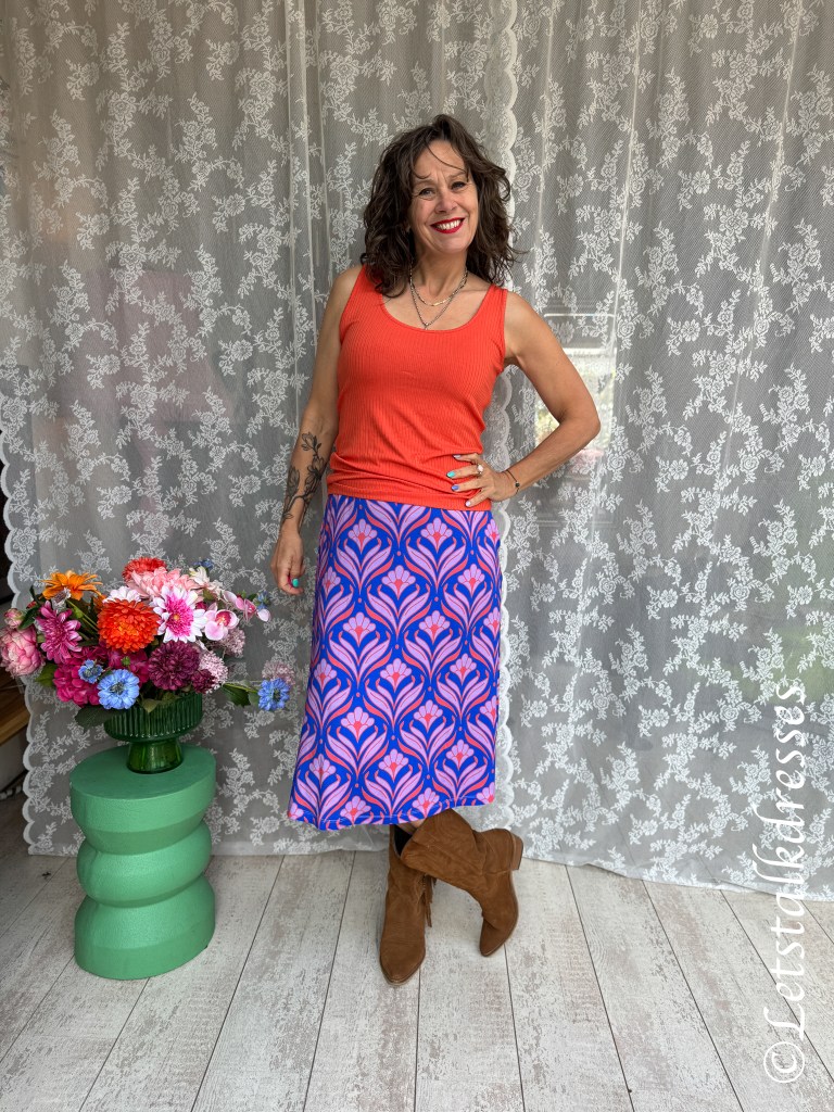 De Stella Tanktop is een aansluitend model. Toch voelt ie losjes omdat de dit tricot erg elastisch is, mede door de rib structuur. Het is een dunne, luchtige jersey dus op en top een zomeritem! En ladies… love and embrace your curves want echt verhullend is deze stof dus niet🤭