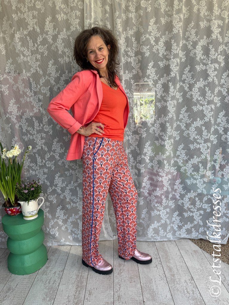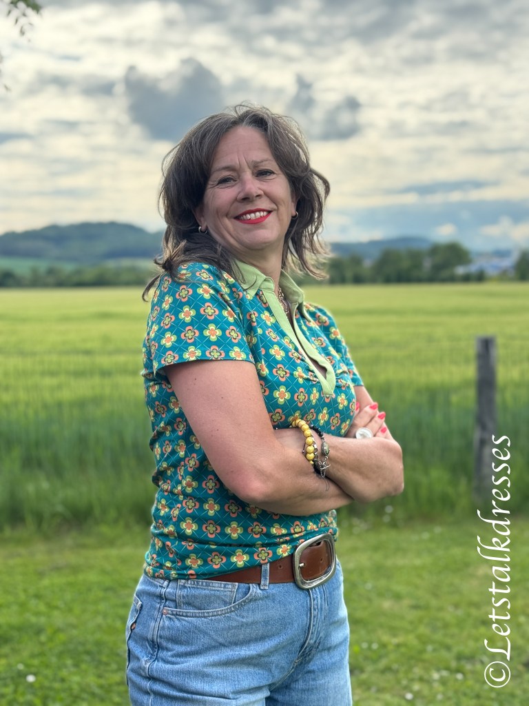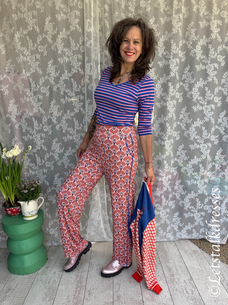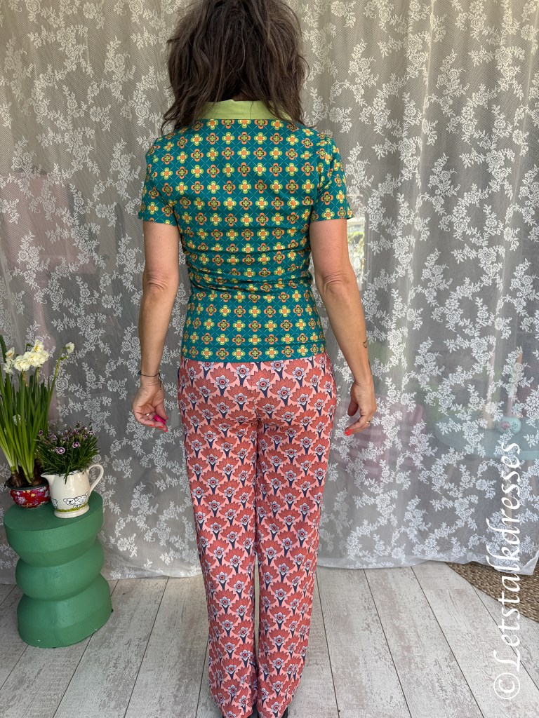 De Suzy Top in de print Vintage Fever stond erg hoog op mijn wenslijstje, samen met de nieuwe Flared Pants in dezelfde print. Helaas was deze pants zo populair dat er niet genoeg voorraad meer was. Ik laat de Suzy Top jullie dus zien op de Carin Trousers ‘Flower Fan’, die in mijn volgende blog aan bod komt!