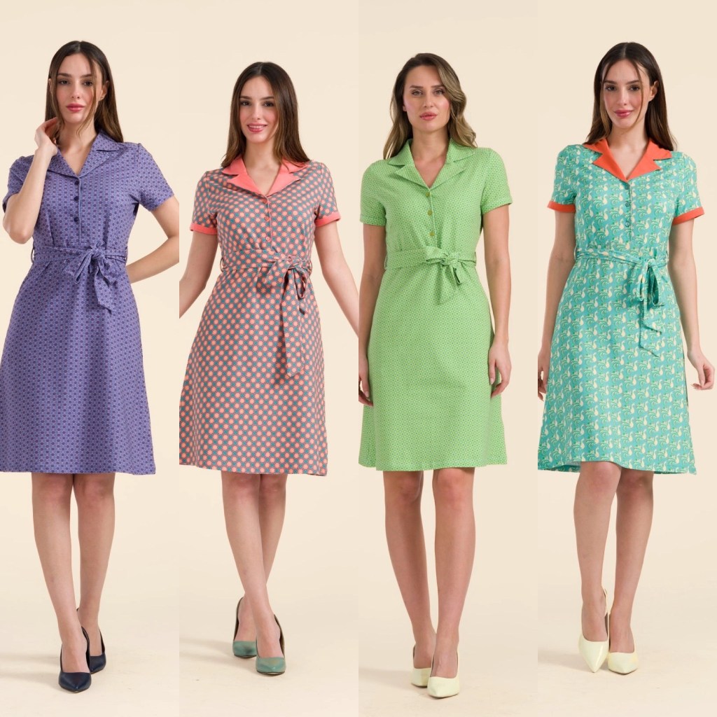 Model Monique is alweer een aantal seizoenen in de collectie en blijft met haar leuke vintage look zeker een topper. Ze heeft veel wat je van een retrostyle jurk mag verwachten.