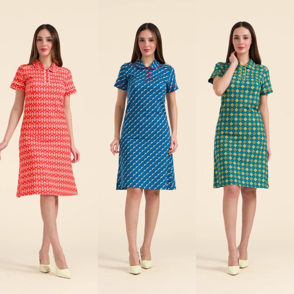 De Cato Polo Dress is dit seizoen in 3 varianten te krijgen: naast deze print ‘Retro Touch’ is hij er ook in de populaire print Vintage Fever en het wat rustigere printje Swallow Migration. De gekozen stof is een steviger biokatoen die het model ook echt helpt zijn A-lijn vorm goed te behouden.