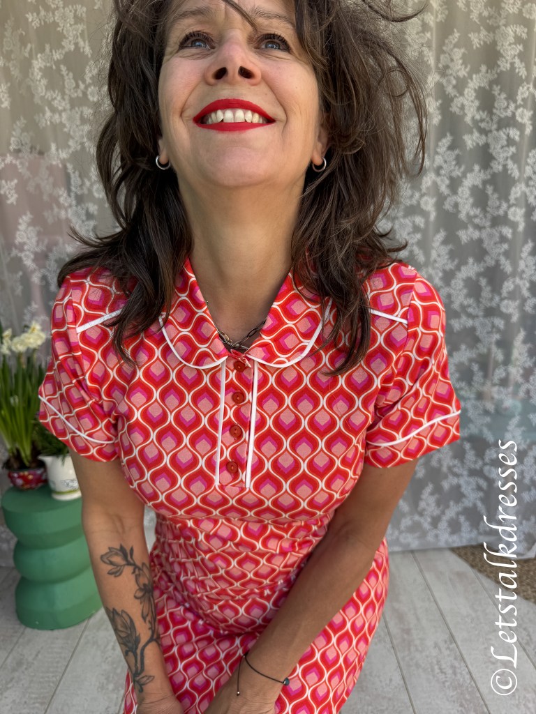 Een heel ander jurkje maar wel met dezelfde kenmerkende retrovibe is de Polo Dress Cato! Dit model is nieuw van LaLamour en komt uit de koker van de nieuwe designer Greetje de Wit. Als je haar kent van haar vroegere eigen label ‘Halsoverkop’ dan herken je het meteen!