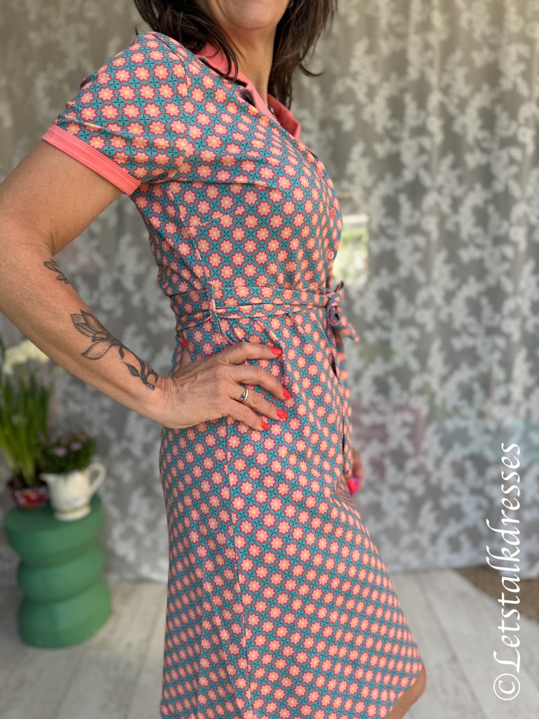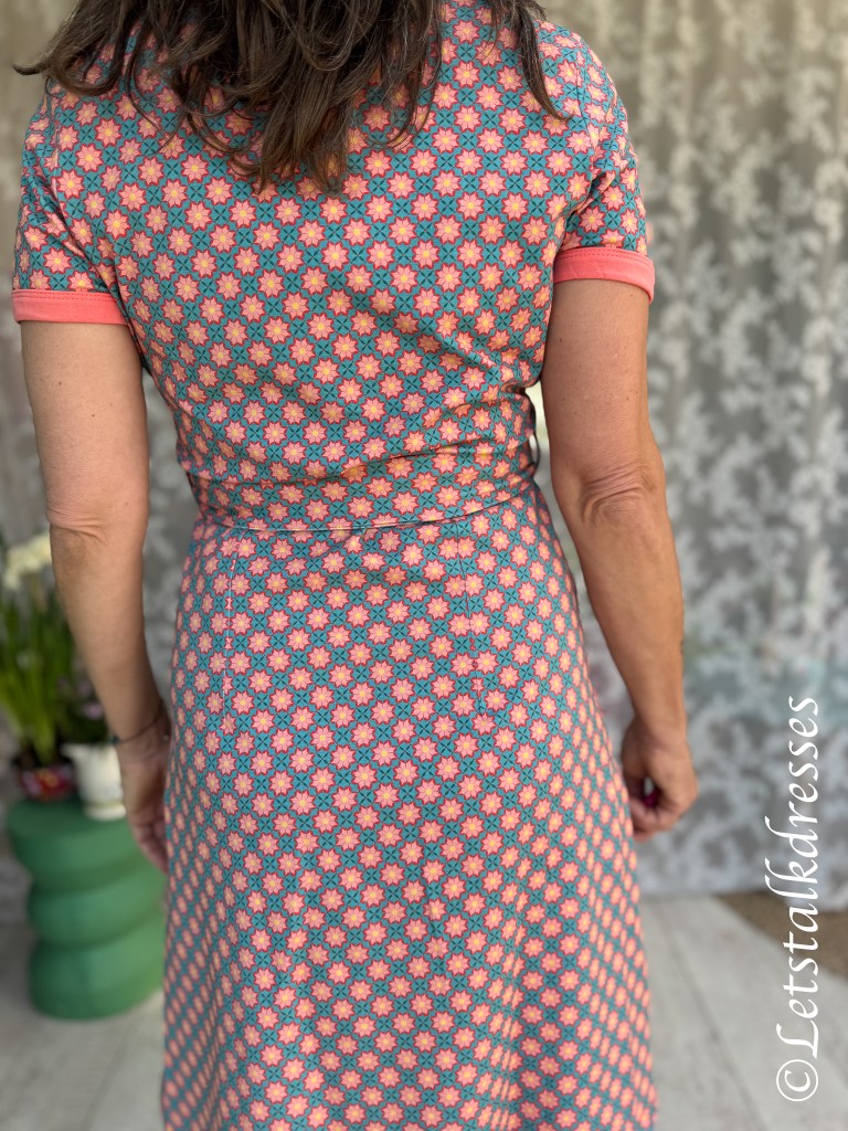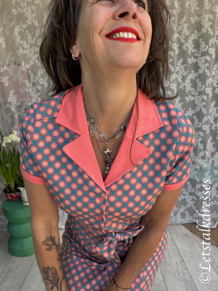 Twee van de 4 uitvoeringen heeft het kraagje in een contrasterende effen kleur zodat ie ook echt eruit knalt! Voor mij was dat ook echt de reden om voor deze print: Vintage Coral Flower, te kiezen. Onder de maattabel in deze blog zie je de 4 varianten!