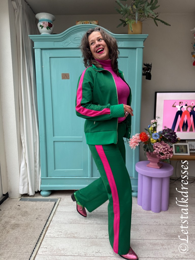 Deze kleurrijke tracksuit van Tante Betsy is dus echt ‘right up my alley!’ Hij is super comfortabel, hij is lekker warm om te dragen, het knelt echt nergens en is toch zeker absoluut mooi gekleed. Het pak heeft veel leuke kleurrijke details en je kan hem ontzettend gevarieerd afstylen zoals je ook zult zien in mijn a.s. reel.